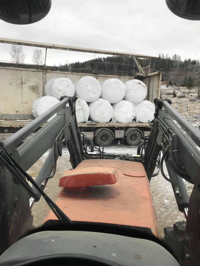 Sen att en rörflenleverans (liknande halm) såklart också skulle tryckas in denna vecka mitt på dagen igår gjorde liksom att det blev skrattretande. Pusslandet alltså. Hem från borta-jobb med chefens traktor så det gjorde det hundra gånger lättare att lasta av (snäll chef man har hör ni!) och sedan tillbaka till lagrån igen.