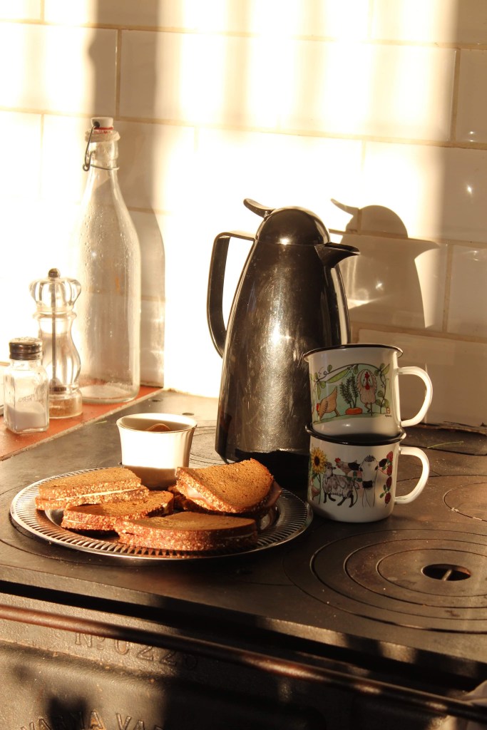 Det kokades varm choklad och breddes mackor och så fikade vi mellis på en solbadande bro.