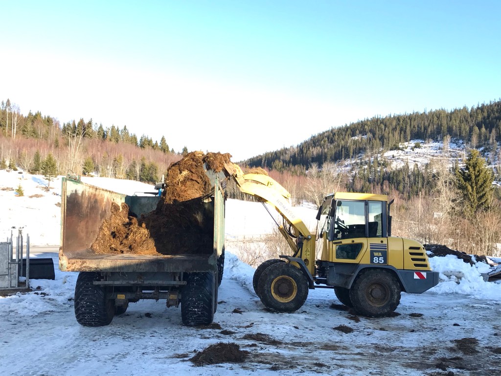 Men med årets milda, fuktiga vinter så går det åt mycket mera strö. Bäddarna bli skitiga så fort i denna luft mot om det varit kallare så mer behöver man ströa på. Och det bygger på snabbare så nu var det dags att tömma för att få börja om på ny kula.