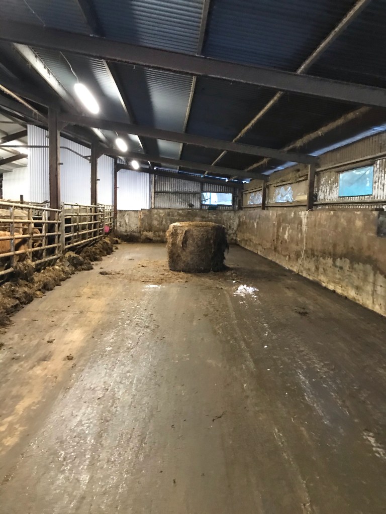 Bädden var tom och nu skulle det ströas nytt, skrapas gångarna där de stått instängda under tiden bädden körts ut och flyttas lite djur.