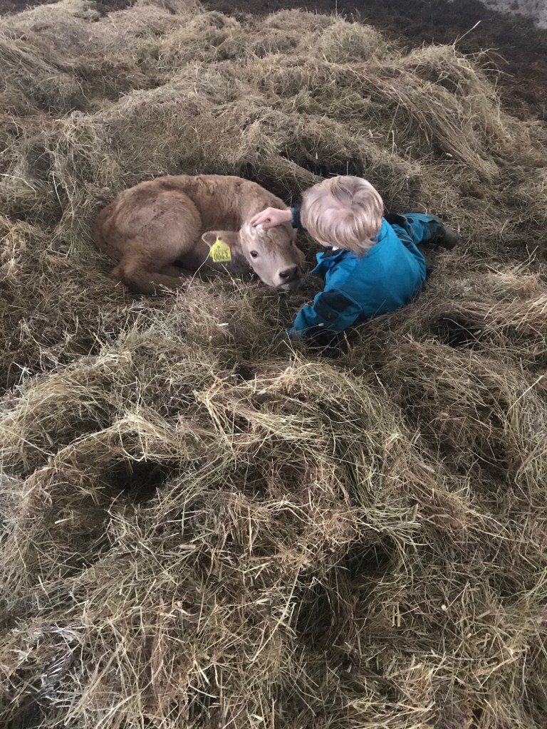 Och där på bilden är det två som hjärtar varandra också. Årets första kalv som dök upp härom dagen och Lilla P ❤