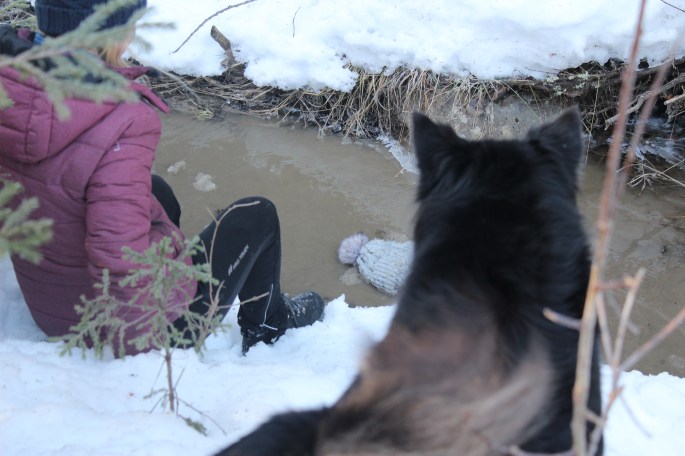 Lite upptäckande som resulterade i en mössa som höll på att försvinna med strömmen, men mamman hann på sekunden fiska upp den (!). Hela vägen var en isbana detta vid en tidpunkt som kan vara lite känslig hos små barn, där kring lunch. Trötta och hungriga på hemvägen.