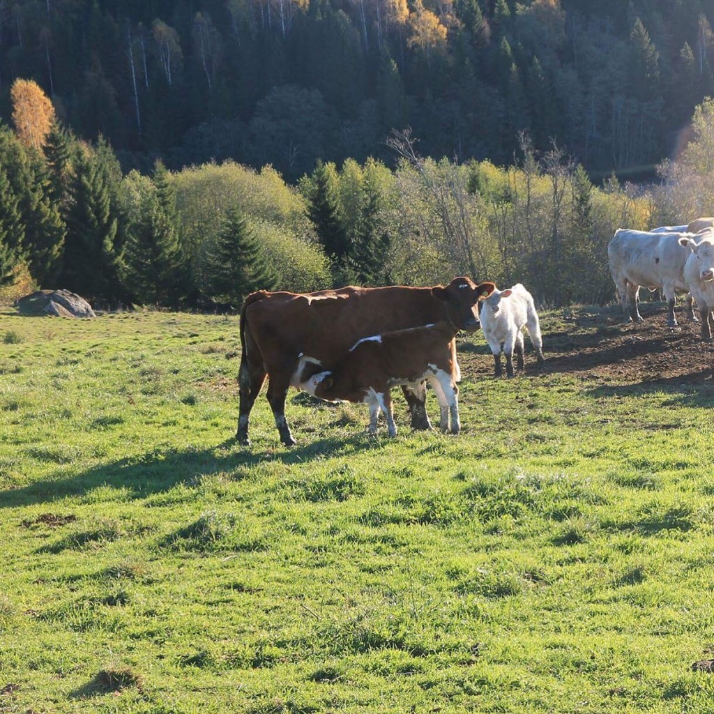 Och så har vi måsta avlivat en ko idag. En av de tre mjölkkossorna vi har kvar nu (förutom Lovis och Lisa också då, med Brown Swiss – blandning). Baksidan med detta yrke. När ett djur blir sjukt och såna här beslut måste tas. Extra jobbigt är det ju också då det är en ko vi har mycket känslor för. Både ”personlighetsmässigt”, men också då hon påminner oss om en annan tid. Henne har vi varit mjölkbönder med. Henne har vi mjölkat i mjölkgropen och mjölken har ni kunnat köpa i olika former av Norrmejerier. Hon var ingen direkt stjärna då, avkastningsmässigt (mjölkmängd), därav en anledning till att vi haft hon kvar. Lite för ”dålig” för att sälja vidare som producerande mjölkko när vi la ned men för fin för att bara skicka på slakt, och trevlig! Och hon har till skillnad från de flesta andra mjölkkor vi hade kvar in i dikoproduktionen klarat detta liv galant! Hon har fått ett en kalv om året och diat den. Och agerat ”taktik-ko” bland sprättiga köttisar att visa sig coollugn och komma på ropande kommando så de andra hänger efter.