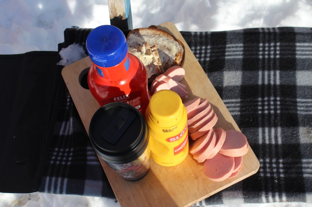 Grillade korv till lunch, ute i solen. I skitiga arbetskläder och barnen runt omkring oss. En sån där liten stund att bara ta in.