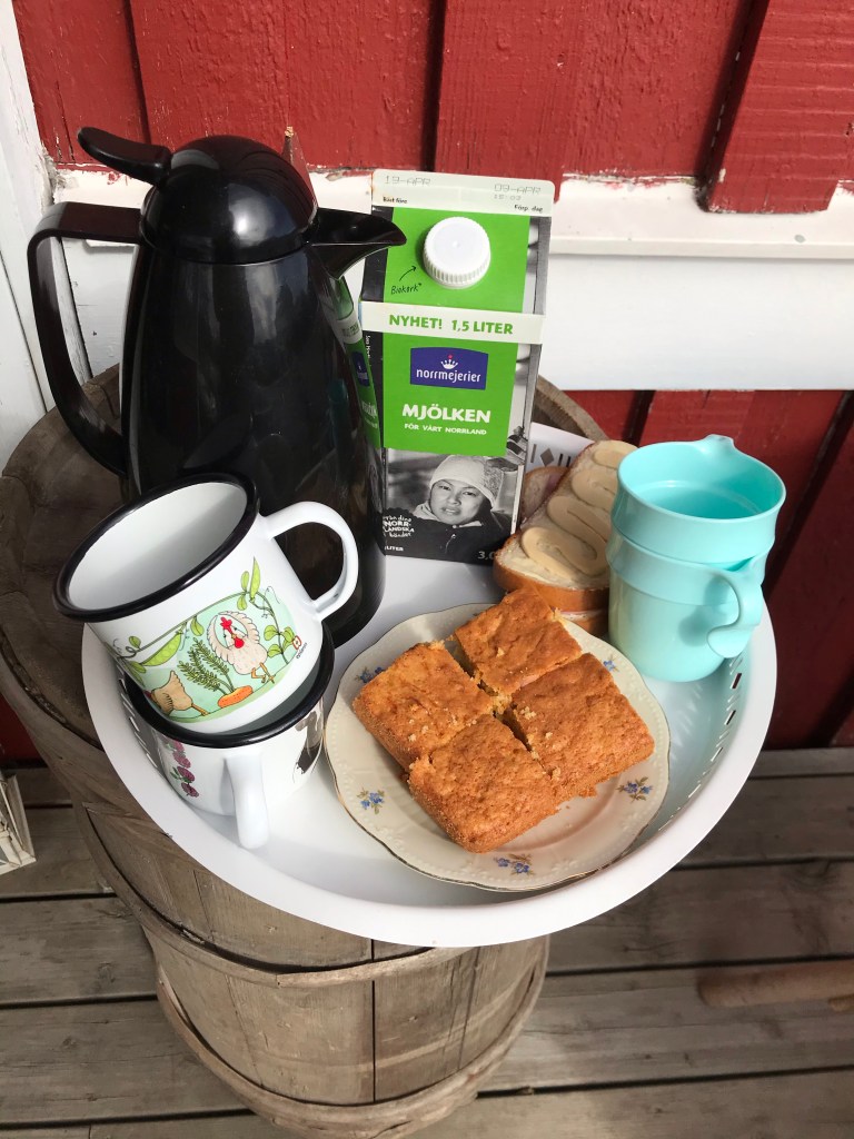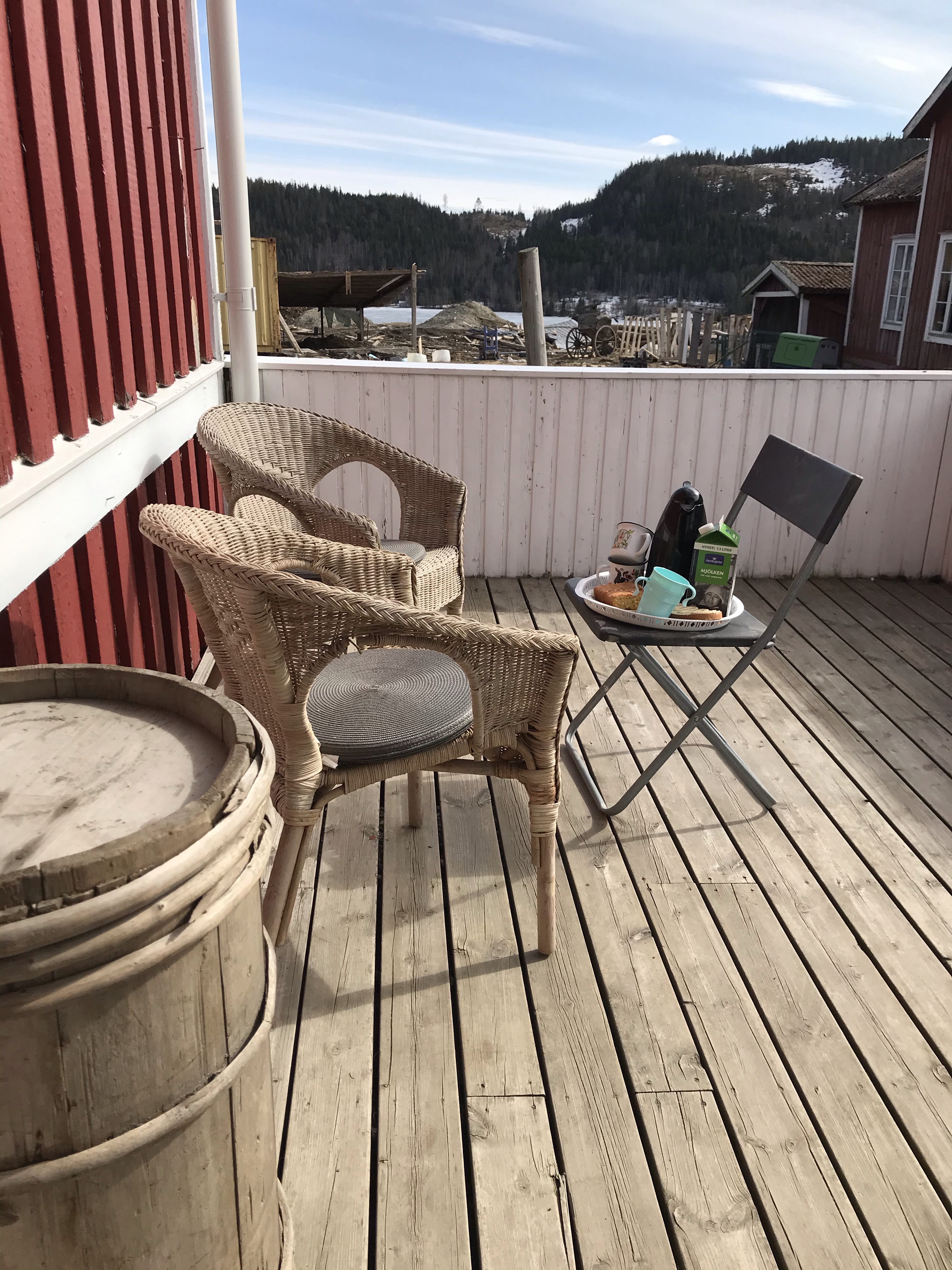 En dag här i veckan invigde vi altanfikat också! Mormorn kom förbi på kaffe och vi avancerade upp från vinterns ”brofika”.