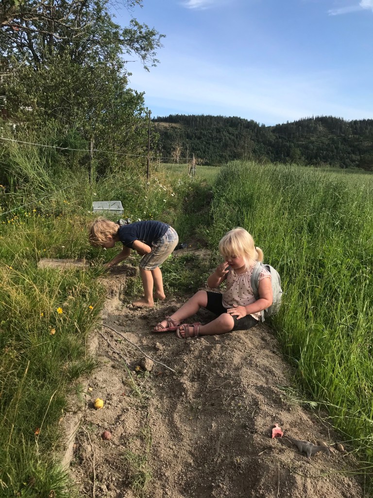 Rond två i stängslingen blev då tillsammans med dom men lägligt nog höll vi till precis framför huset. Det lektes både det ena och det andra och det var två små gråa jorddammiga barn när vi gick in.