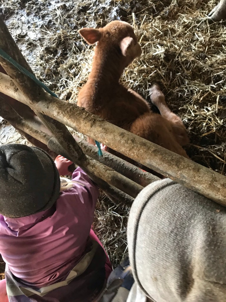 Pappan fick present och sedan spenderade vi förmiddagen ute i lagårn.
