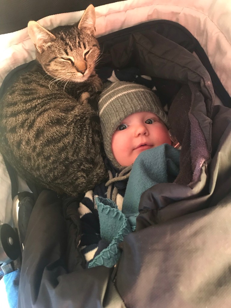 Kisse och bäbis kör ofta långsovningen ute i vagnen tillsammans!