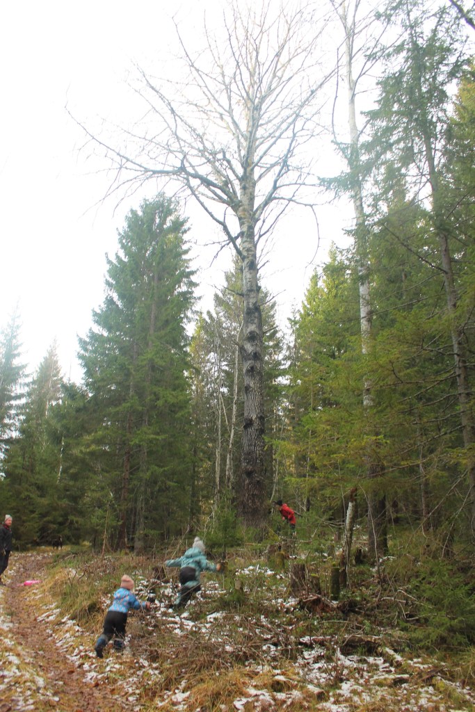 I söndags kom mormor och morfar och vi gick för att kolla om den ”Stora aspen” var kvar som min mamma hittat för många år sedan.