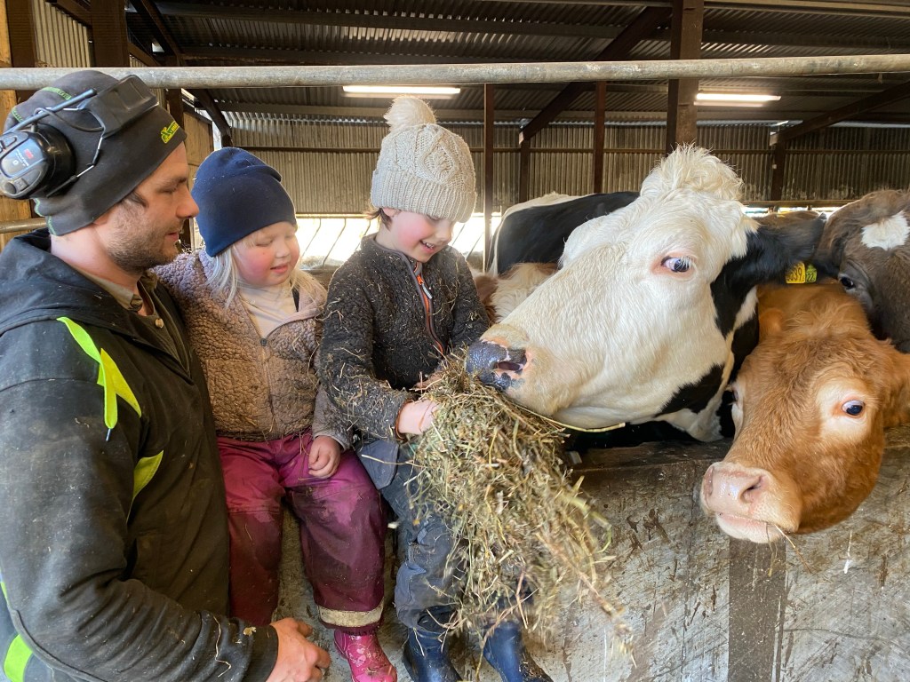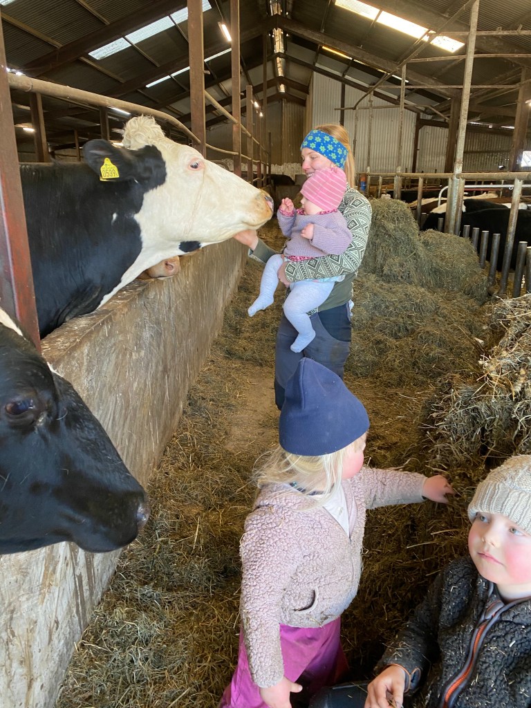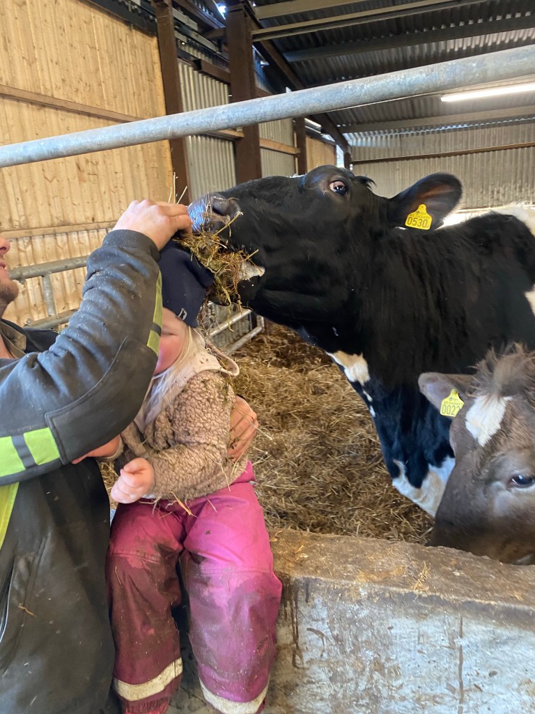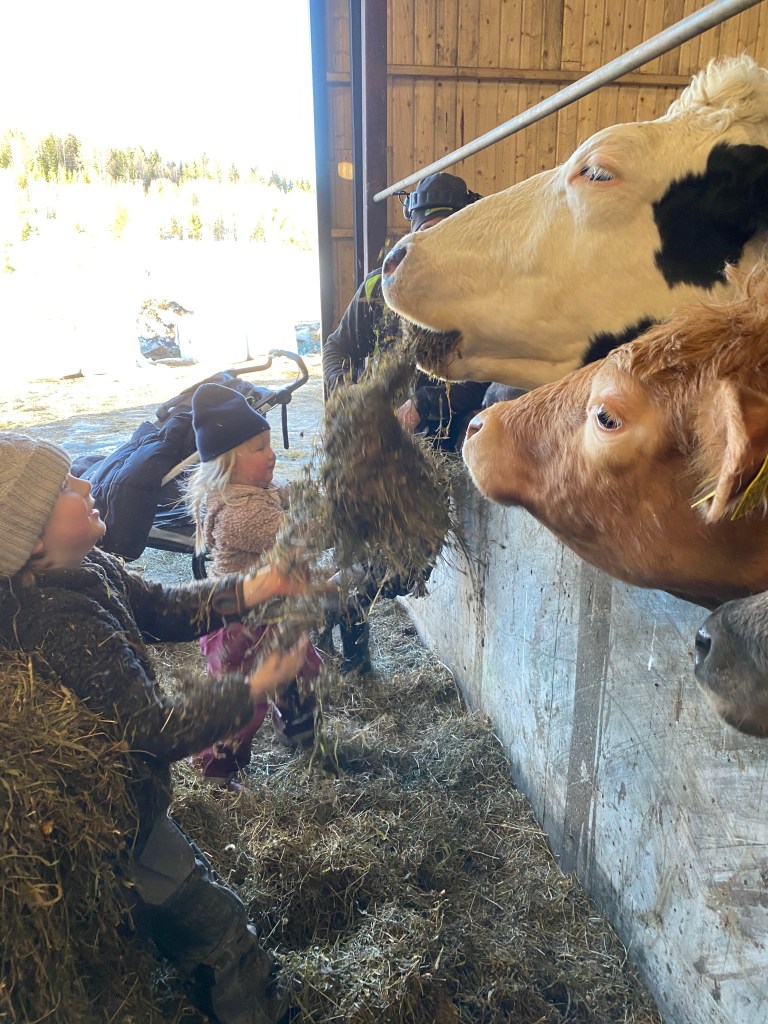 Pappa C hade också kommit hem och var hemma över dagen. Han gjorde det som behövdes i lagårn och så hade vi en supermysig eftermiddag hela gänget bland korna.