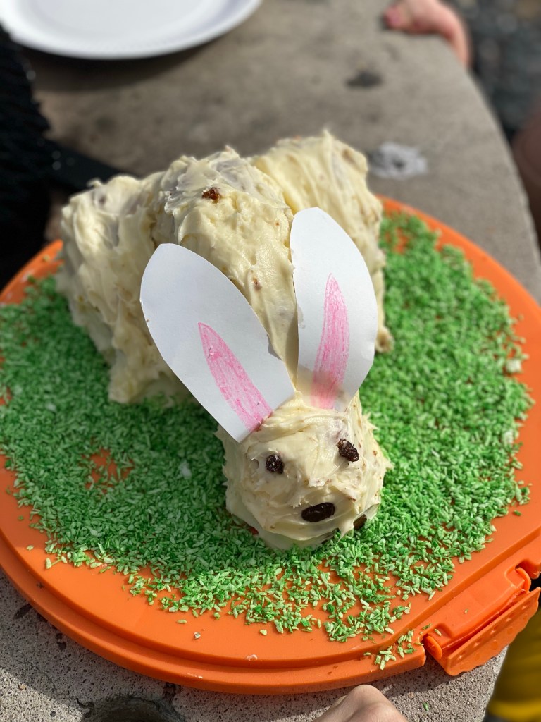 Till Måviken bar det där det läade bra i den annars blåsiga dagen. Det grillades hamburgare och mormor hade bakat en kanintårta!