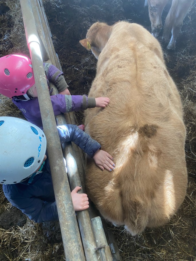 Just såna här stunder man verkligen stannar upp. Ja det tar ju lite längre tid att göra lagårn men dessa stunder är ju guld! Barnen älskar att få klappa djuren och när de ser hur hon står kvar och njuter av det så blir de alldeles lyckliga – och så även mamman.