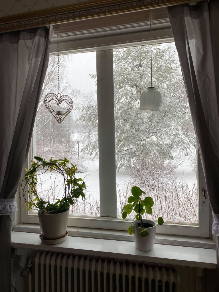 Nu ska vi snart ta oss ut i detta snöbus till lagårn. Pappan sover då han har varit i grannbyn och hjälpt till att putta kor genom en nyinstallerad robot inatt!
