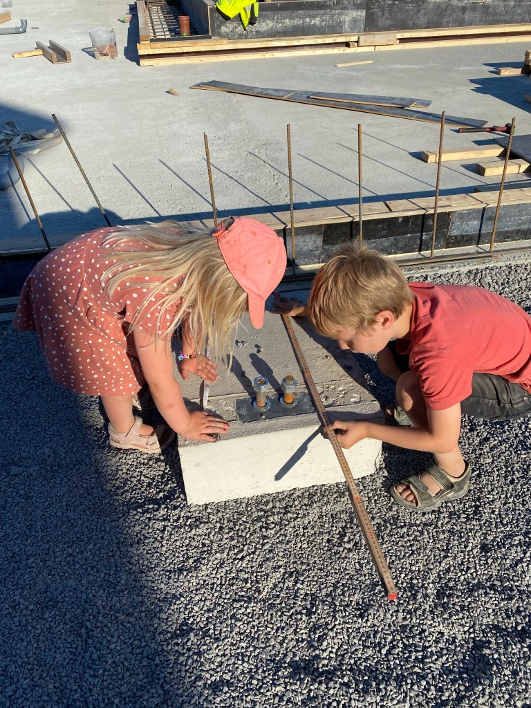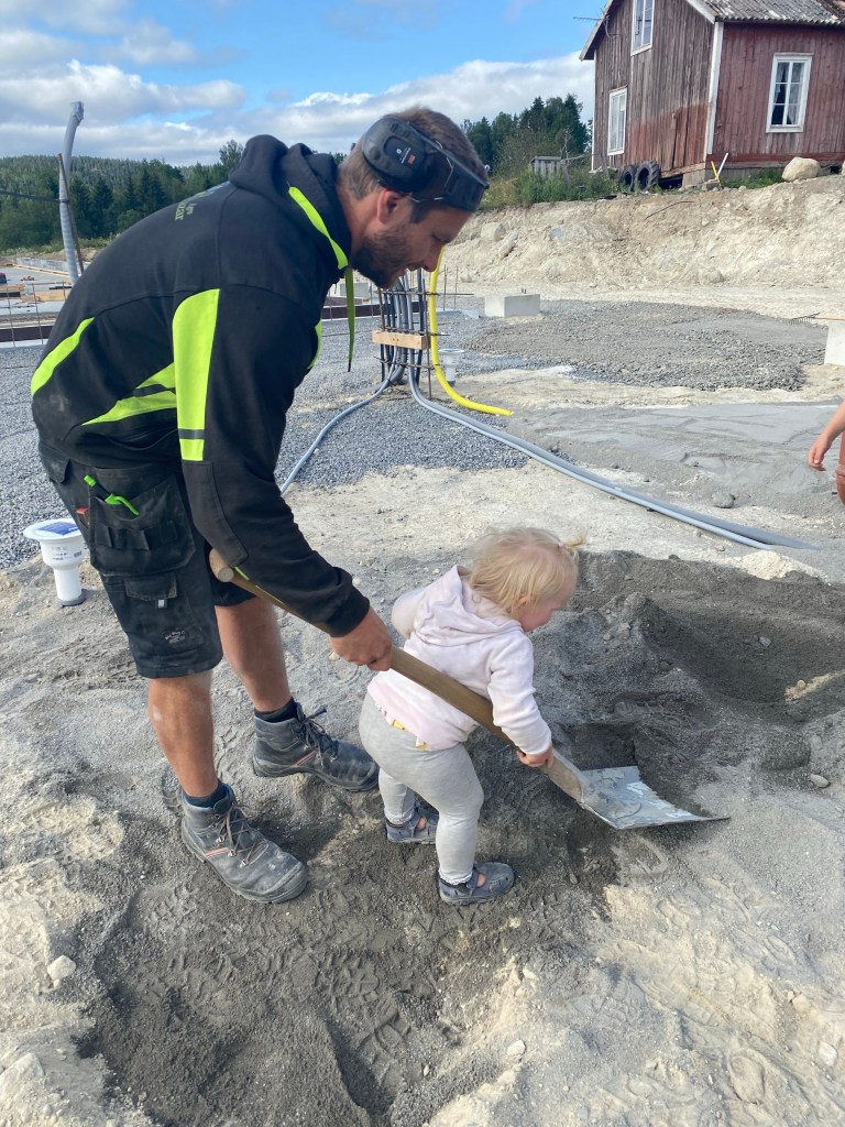 Mycket hjälpredor har vi runt oss också. Men det är guld värt när de större kan gå och leka en stund uppe byn. När det inte är så mycket kul som händer här då mamma och pappa bara krattar grus på grunden timme efter timme liksom…!