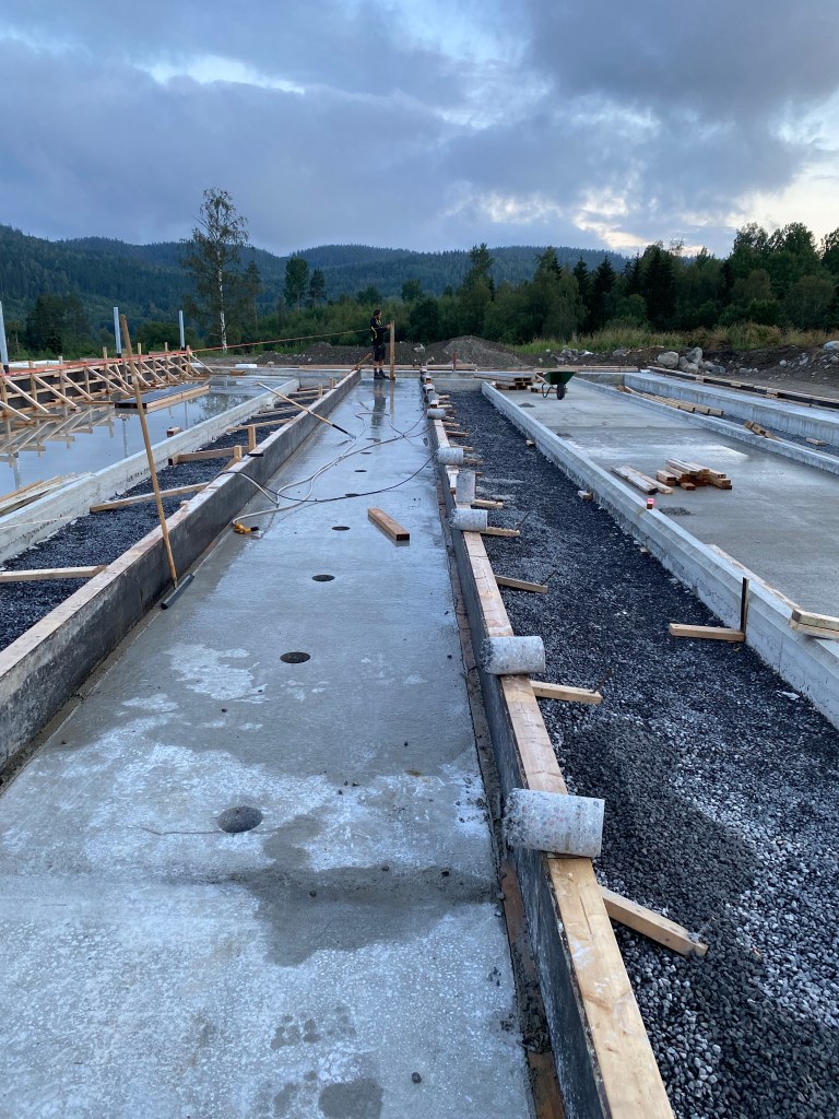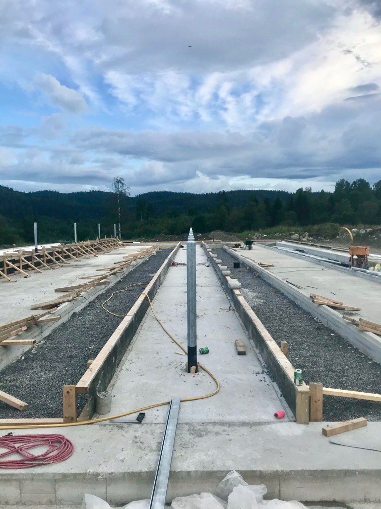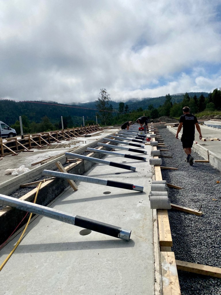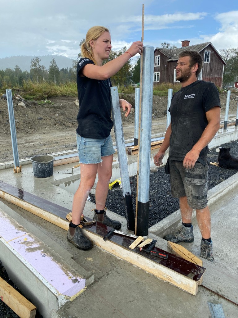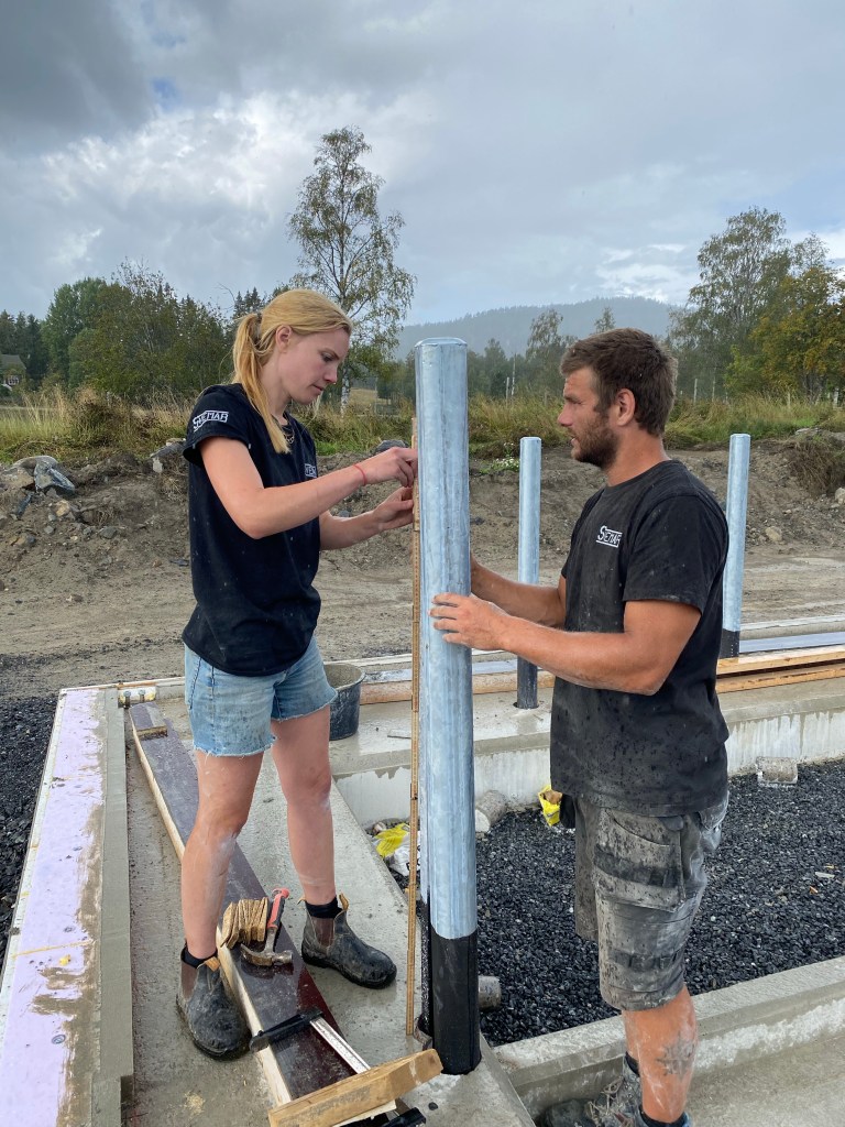 Allt eftersom att hålen borrades så har vi gjutit stolpen på plats. Istället för att platsgjuta alla stolpar när golven gjuts så gör vi såhär, det ska tydligen vara ännu svårare och bökigare att platsgjuta stolpen på exakta stället.