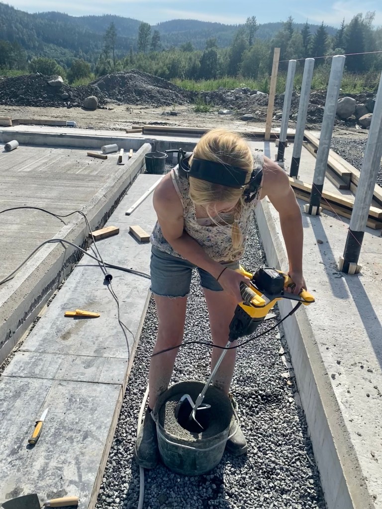 Igårkväll satte vi sista stolpen för dagen i kolmörker med hjälp av mobillampan för att få klart ena sidan och göra slut på den redan blandade betongen.