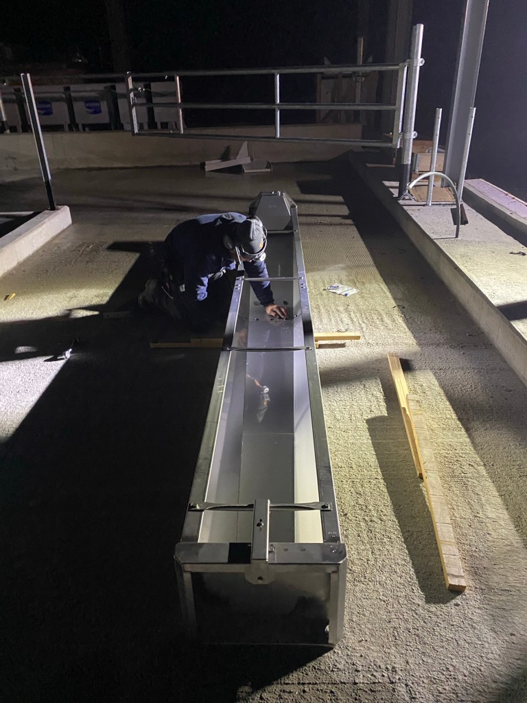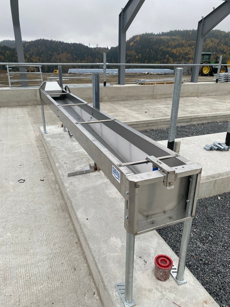 Två låånga kar blir det i varsin ände av ladugården. En ny modell så det räcker med två kar för att ge behovet vattentillgång till antalet kor. Detta finns det ju bestämmelser över, hur mycket vatten som ska finnas konstant tillgänglig till antalet kor. Och med vattenkar istället för små vattenkoppar så kan kon dricka mer på kortare tid. En ko dricker 80-120 liter per dag! Som såklart kan bli ännu mer om det är varmt.