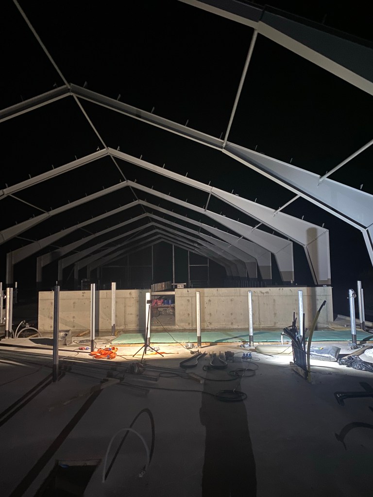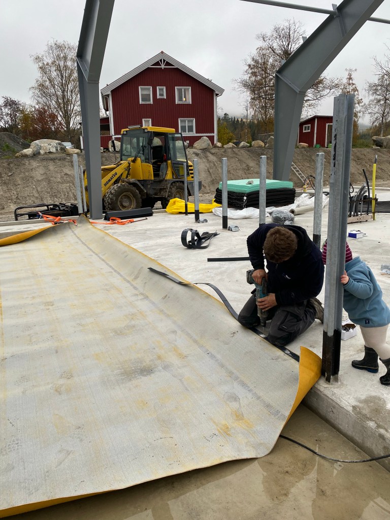 Charlie har börjat skruvat upp grindar och låsgrindar i ladugården, skruvat ihop vattenkar och lagt madrass i VIPen!