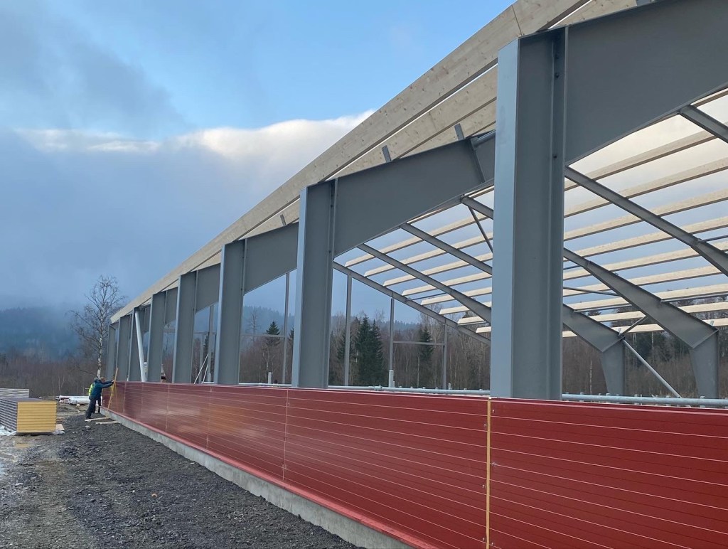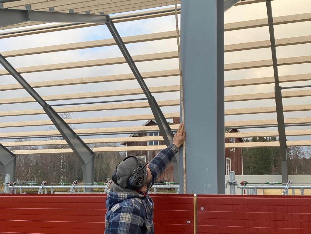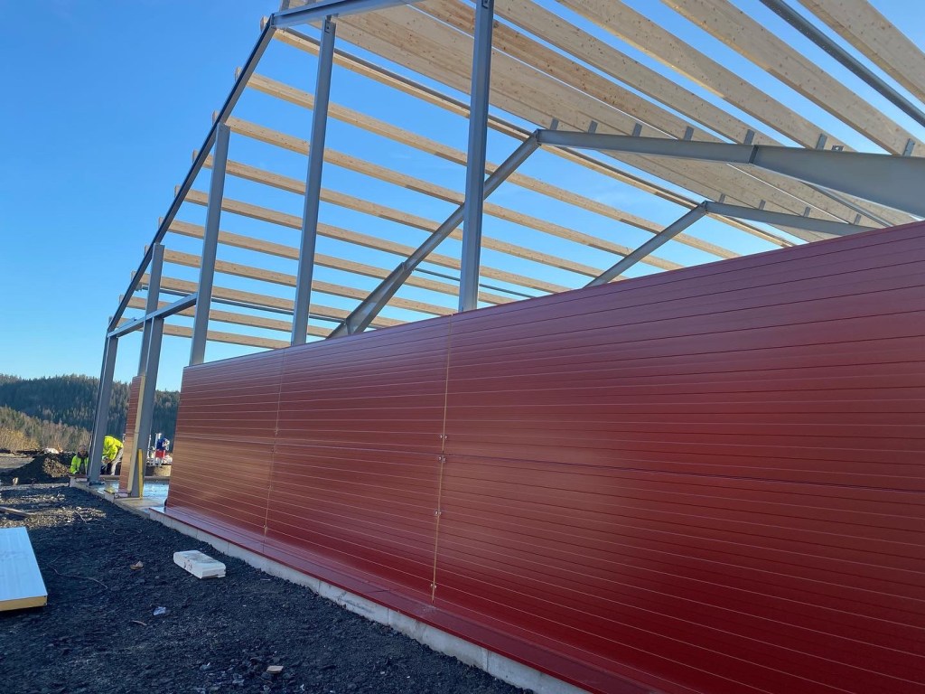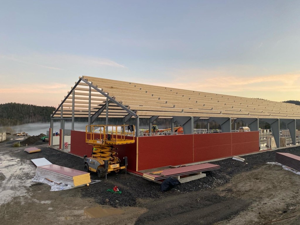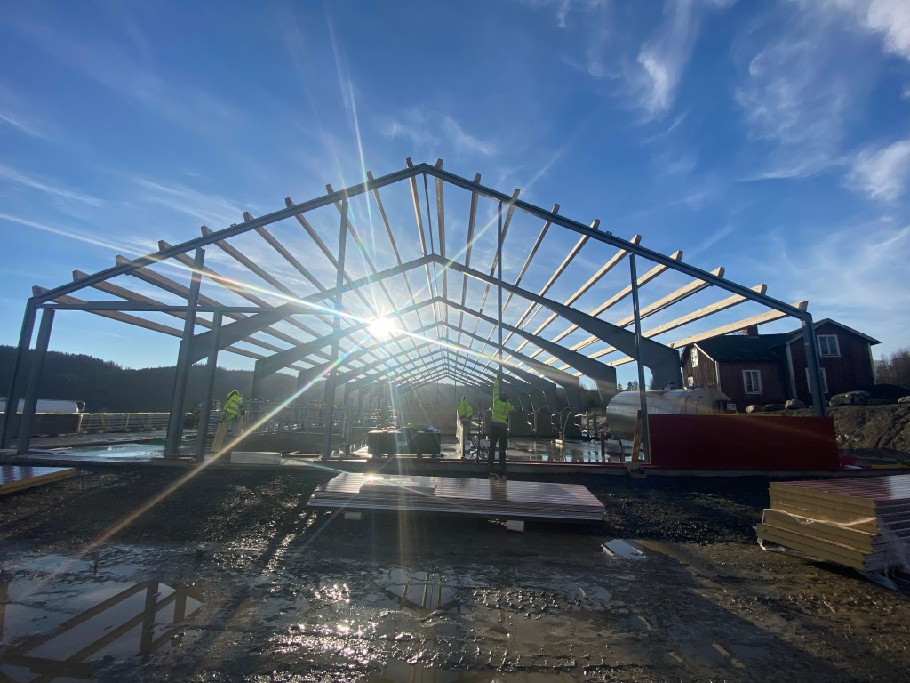 Det är Fjössystem som bygger hela ladugården och både tak och väggar kommer i färdiga sandwichpaneler. Plåt-isolering-plåt.