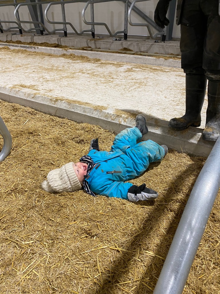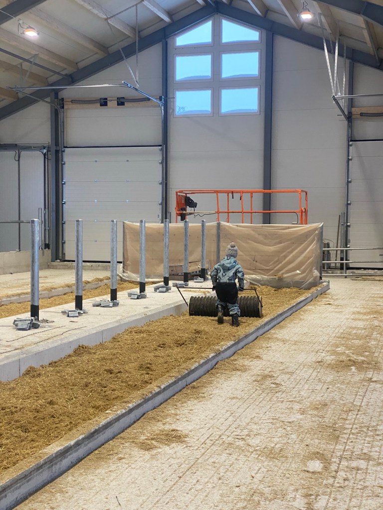 Alltså. Vi har valt att ha djupströbås som det kan kallas. Inte uppgjutna bås med tjocka madrasser som kostar skjortan utan vi har sett och hört att fastnat för att ha bäddar med fluffigt strö. Korna är tunga och de får på det här viset en mjuk bädd och inget som sliter och trycker på hasorna, de har lätt att kliva upp med bra grepp och ger en komfort som gör att kon VILL gå och lägga sig. Det är när hon ligger ner och idisslar som hon producerar mjölk. Så antigen ska en ko stå och äta vid foderbordet, mjölka eller ligga ner i ett bås.