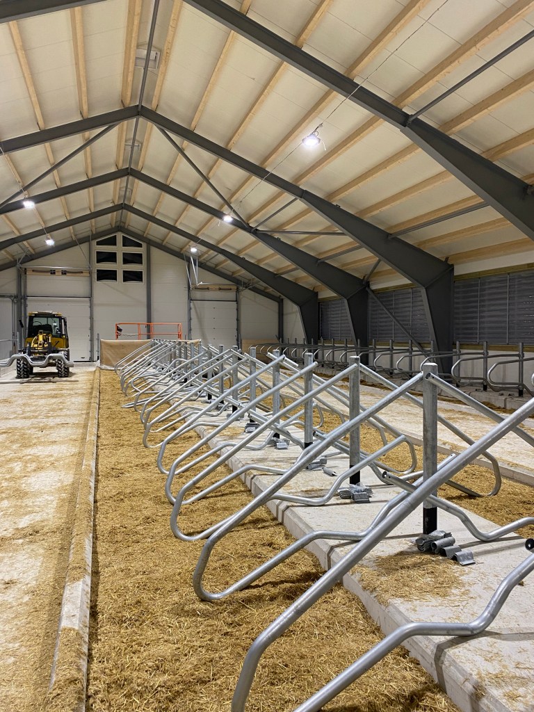 Så, en första störning är gjord i vår nya ladugård! Båsen skruvas upp i detta nu och imorgon tar vi tag i nackbommarna. Visar igen när allt är på plats!