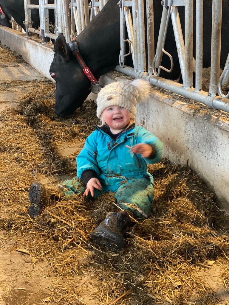 Det andra dagliga gjordes som att blanda foder, skrapa gångarna i ungdjursladugården och så innan barnen hämtades vid tre. En kaffekopp hos kusin Nathalie unnade vi oss och när vi kom hem och hade ätit middag fick kidsen se en film och jag sprang ut för att göra kvällsladugården.