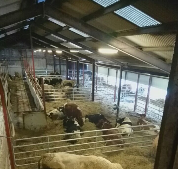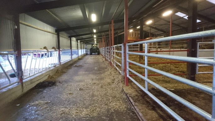 Vi byggde om ladugården när vi ställde om. Vi hade lösdrift innan också (att alla kor hela tiden går fritt) med båspallar att ligga på men allt det revs ut och så gjordes stora fack med djupströbäddar istället. Enkelt tänkte vi. Så en extra tanke lades på hur grindar skulle vara osv för att få ett enkelt system när djur ska flyttas och det ska skrapas och halmas.