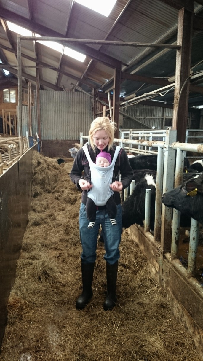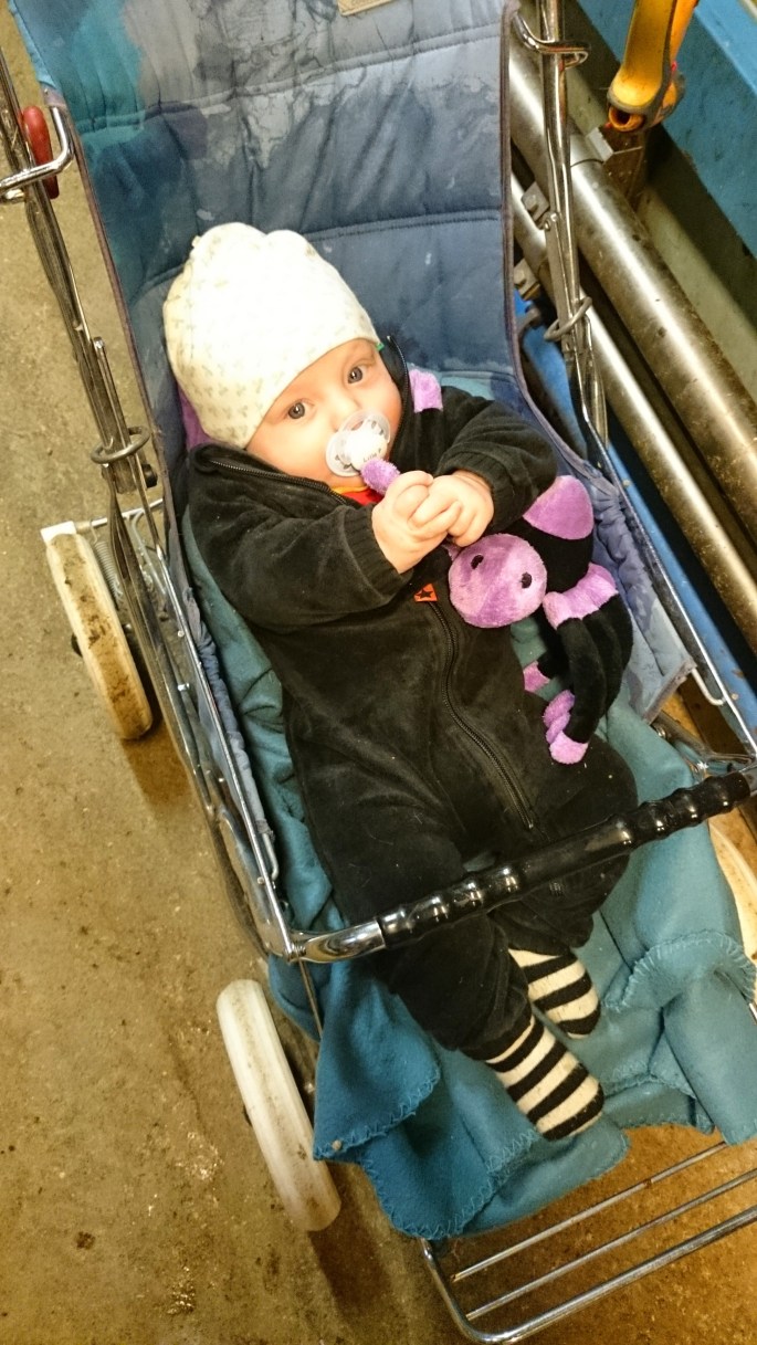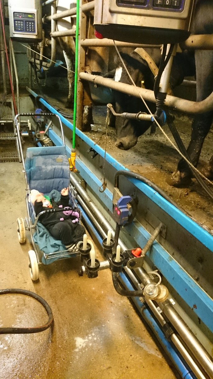 Och jag tror att Lilla P var ungefär 3 månader när jag började ute i lagårn på riktigt igen. Vi hjälpte till nån provmjölkning och så bara innan dess.