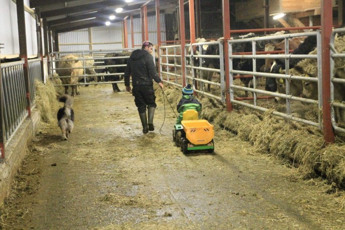Så Lilla P är född under mjölkko-tiden och fått vara med i gropen under mjölkning arena. Sen är man ju aldrig helt ledig i detta yrke, alltid är det något man kan pyssla med!