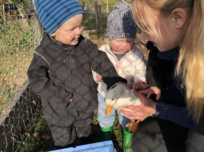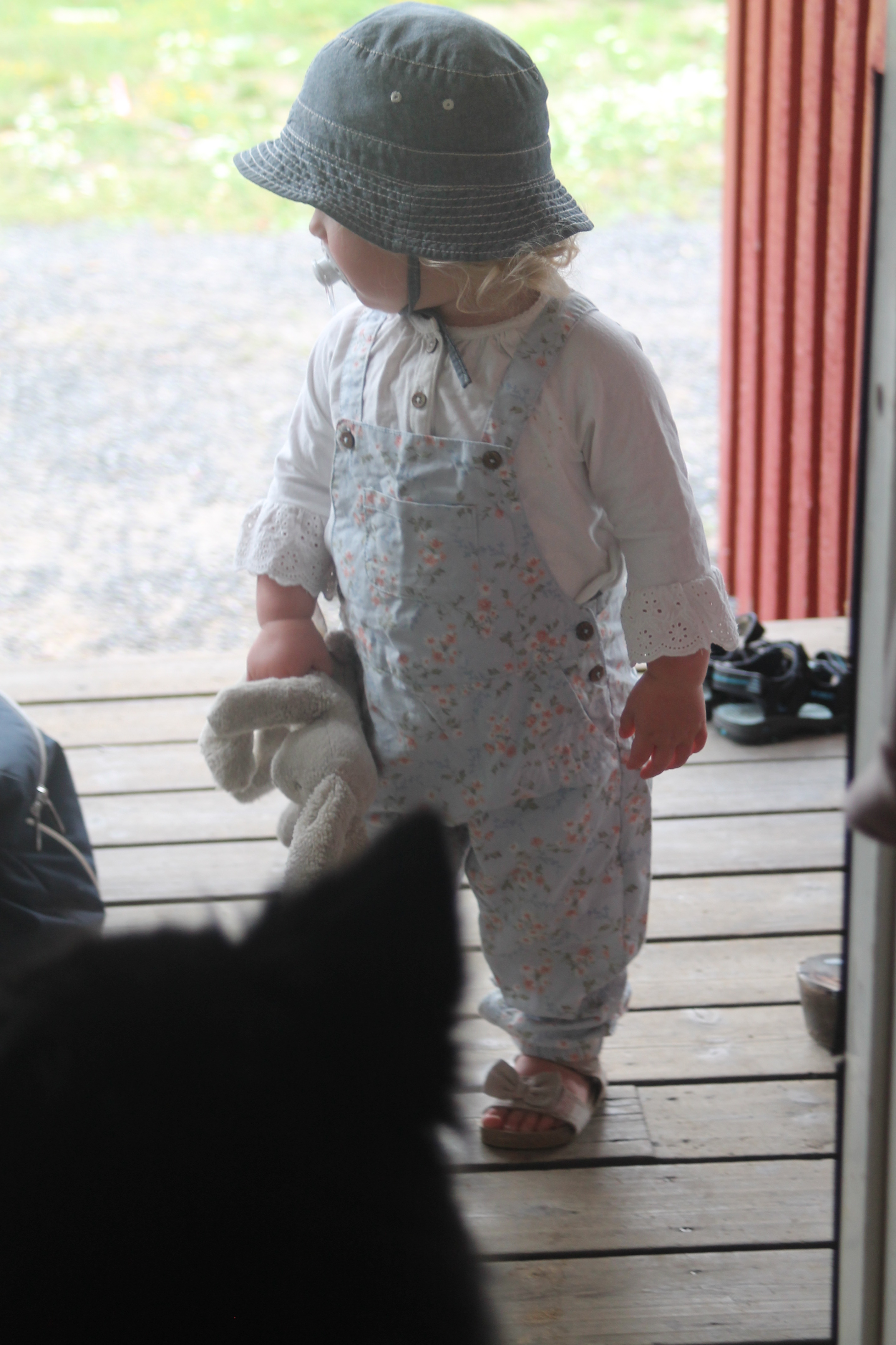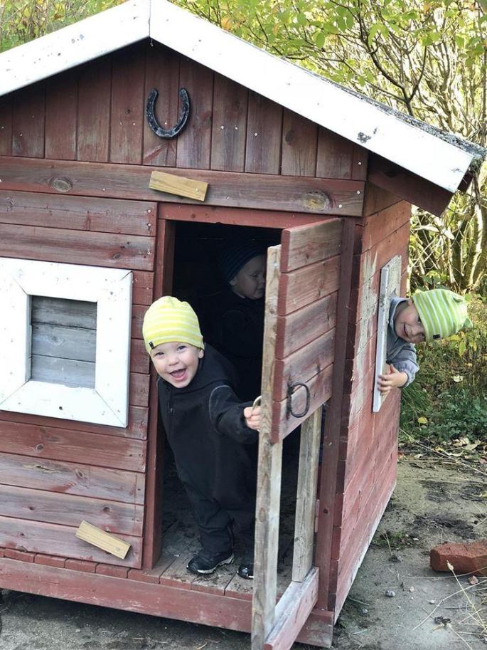 Stegen är väl provad, av barnen i alla fall! Dessa små har inte riktigt fattat att de ska gå upp där på kvällen än (finns andra varianter av hus direkt på backen också) så de får jag lyfta in på kvällen, vilket inte gör mig ett dugg! Då får man den där dagliga hanteringen på alla och bara favoriter som det bärs omkring på.