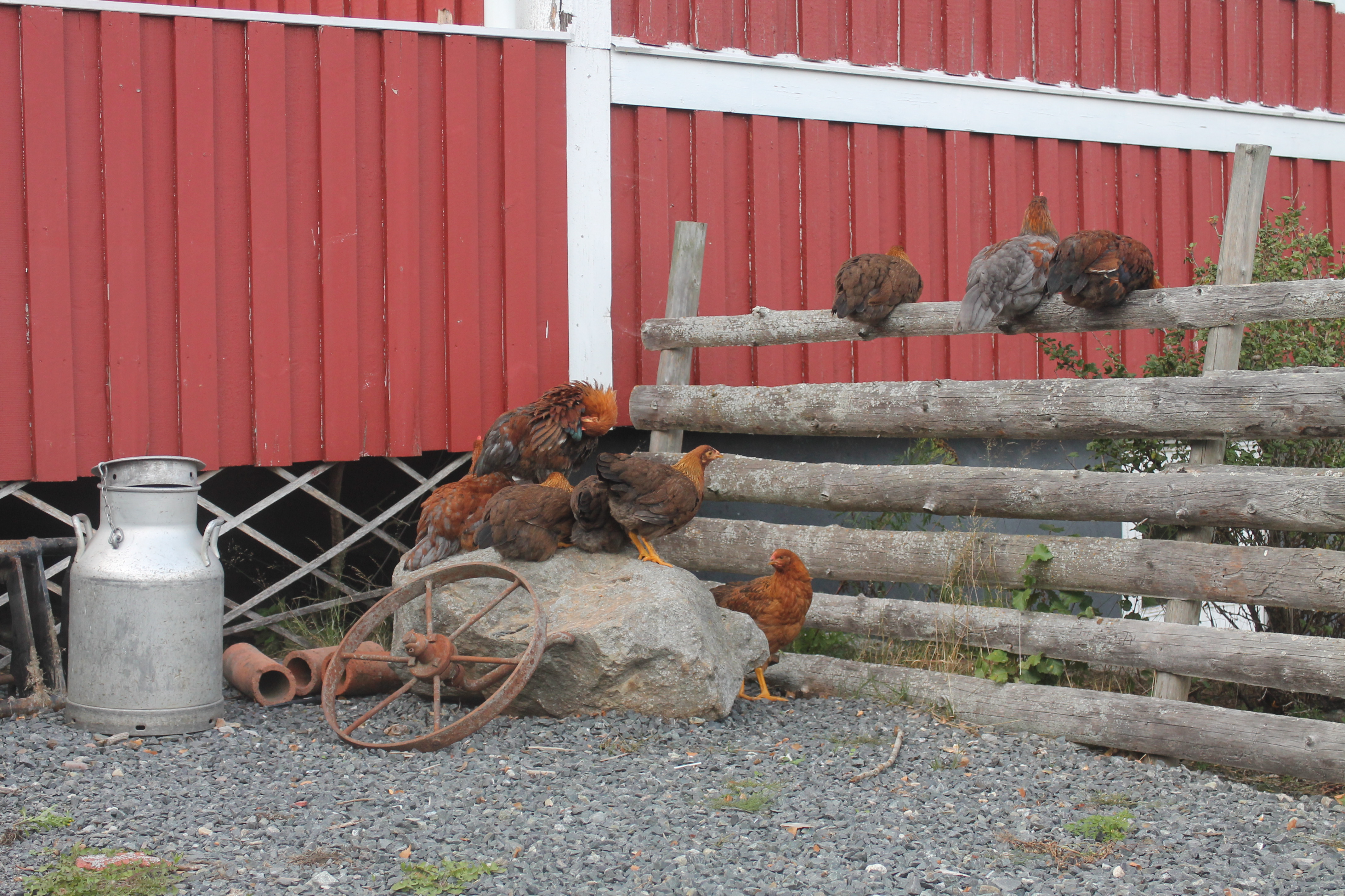De har bott i en kaninbur under dagarna men då den inte alls är särskillt rävsäker och det strosar både en och två kring gården så har jag varje kväll burit över de till en annan kaninbur, burit i källaren och stängt dörren – mycket rävsäkert! De är så stora nu och himla tråkigt för dem att bo där hela dagarna så därav konkar jag ut buren och lyfter över en och en till ”dagburen”.