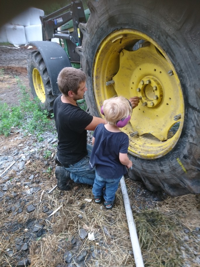 Så Lilla P är född under mjölkko-tiden och fått vara med i gropen under mjölkning arena. Sen är man ju aldrig helt ledig i detta yrke, alltid är det något man kan pyssla med!
