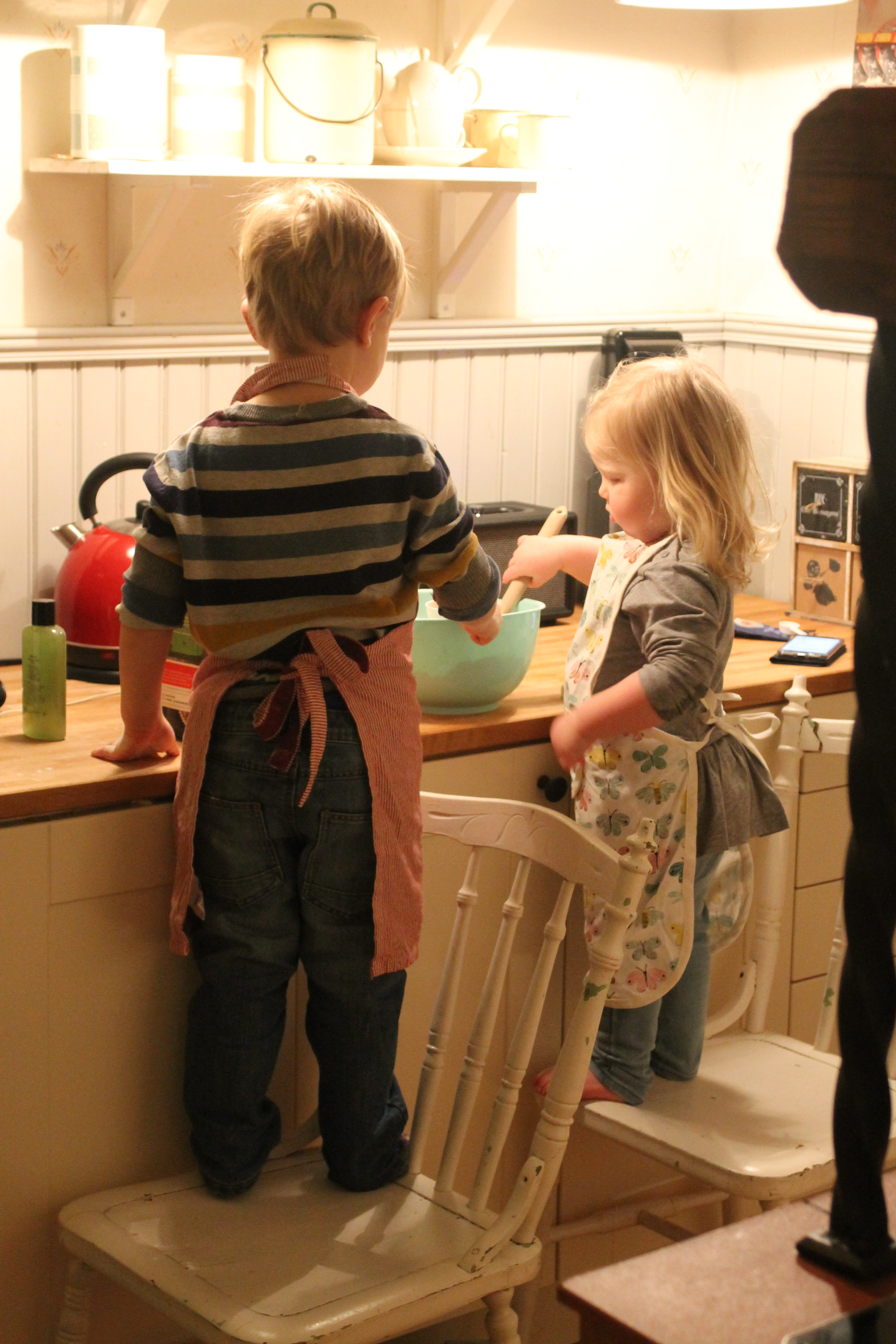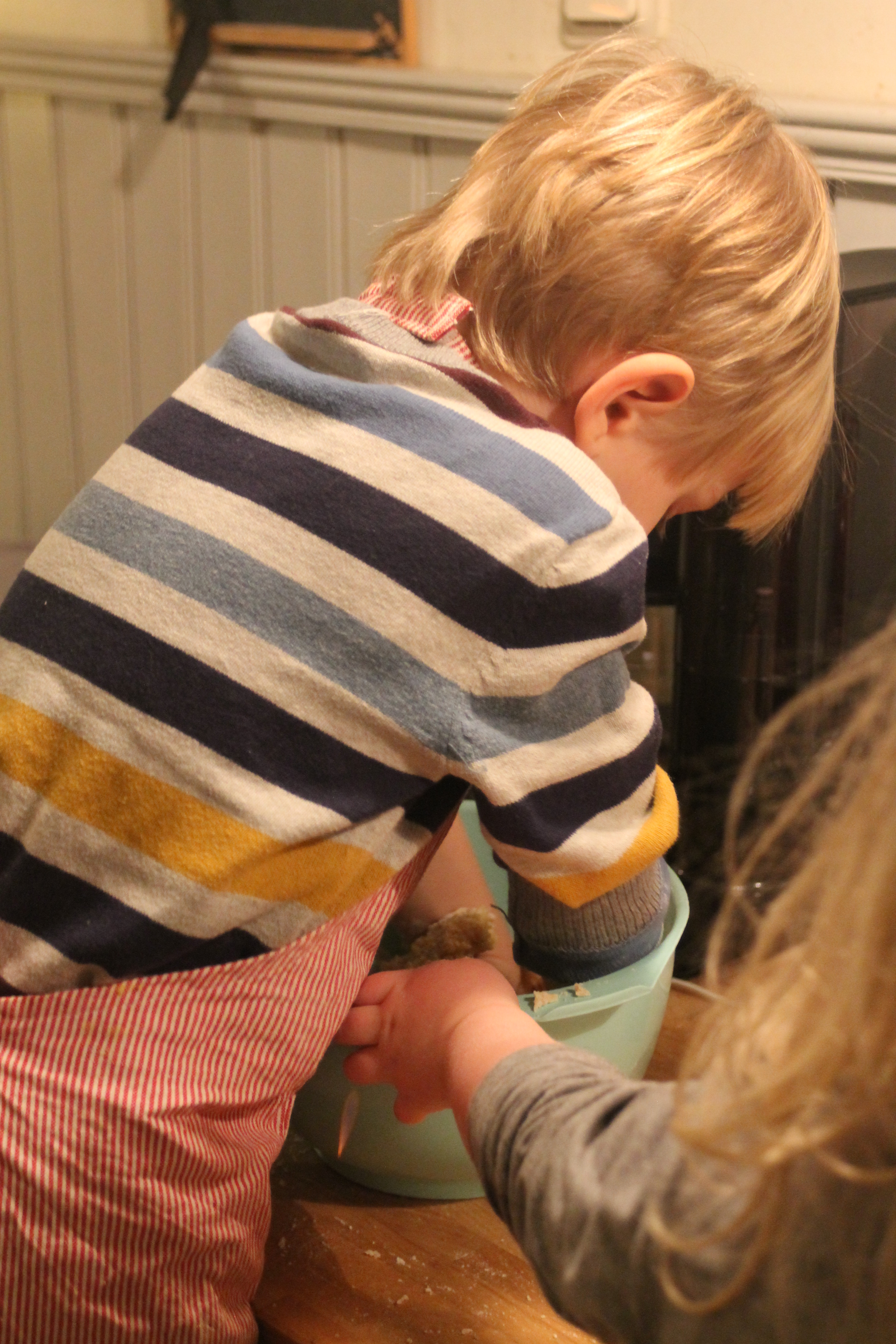Och här är vi fem år senare. Med en pojke som tar på sig denna overall. Som har en lillasyster som såklart också vill ha overall på sig när storebror tar på sig nått nytt. Hon får en alldeles för stor men hon blir så nöjd så.