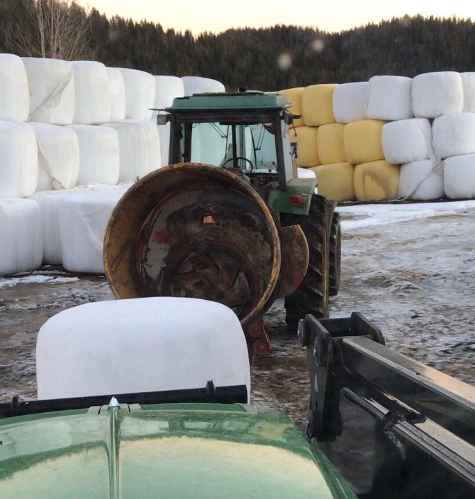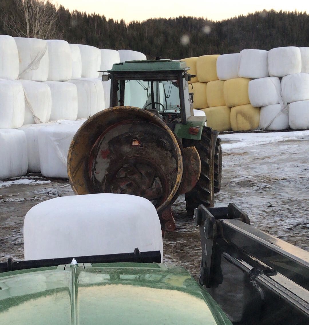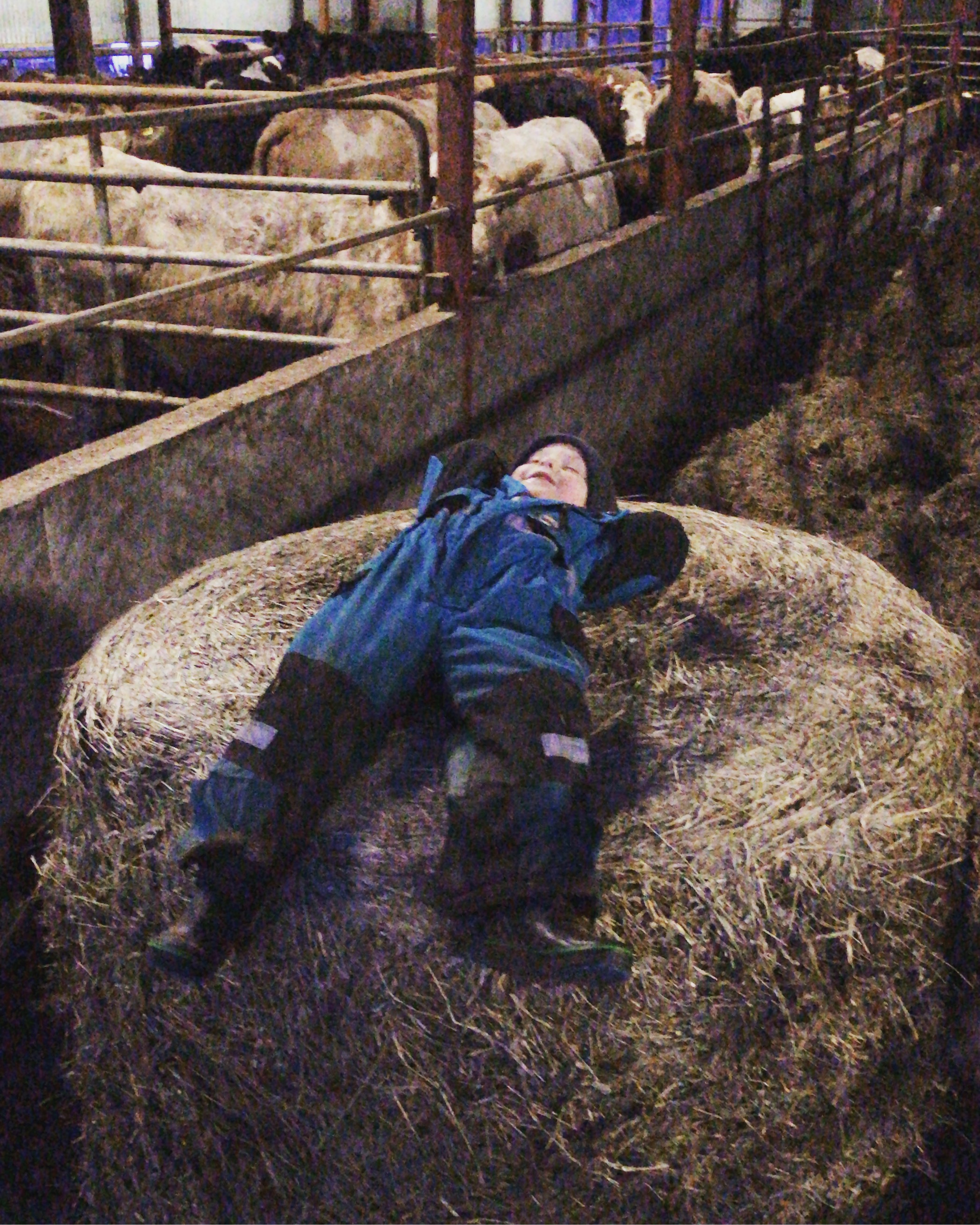 Efter Borta-jobb och förishämtning delade vi på oss och tog varsin overallunge med oss. Jag och den lilla flickan hoppade in i traktorn och körde balar till korna och Lilla P han åkte pappan på jobb, och mjölkade!