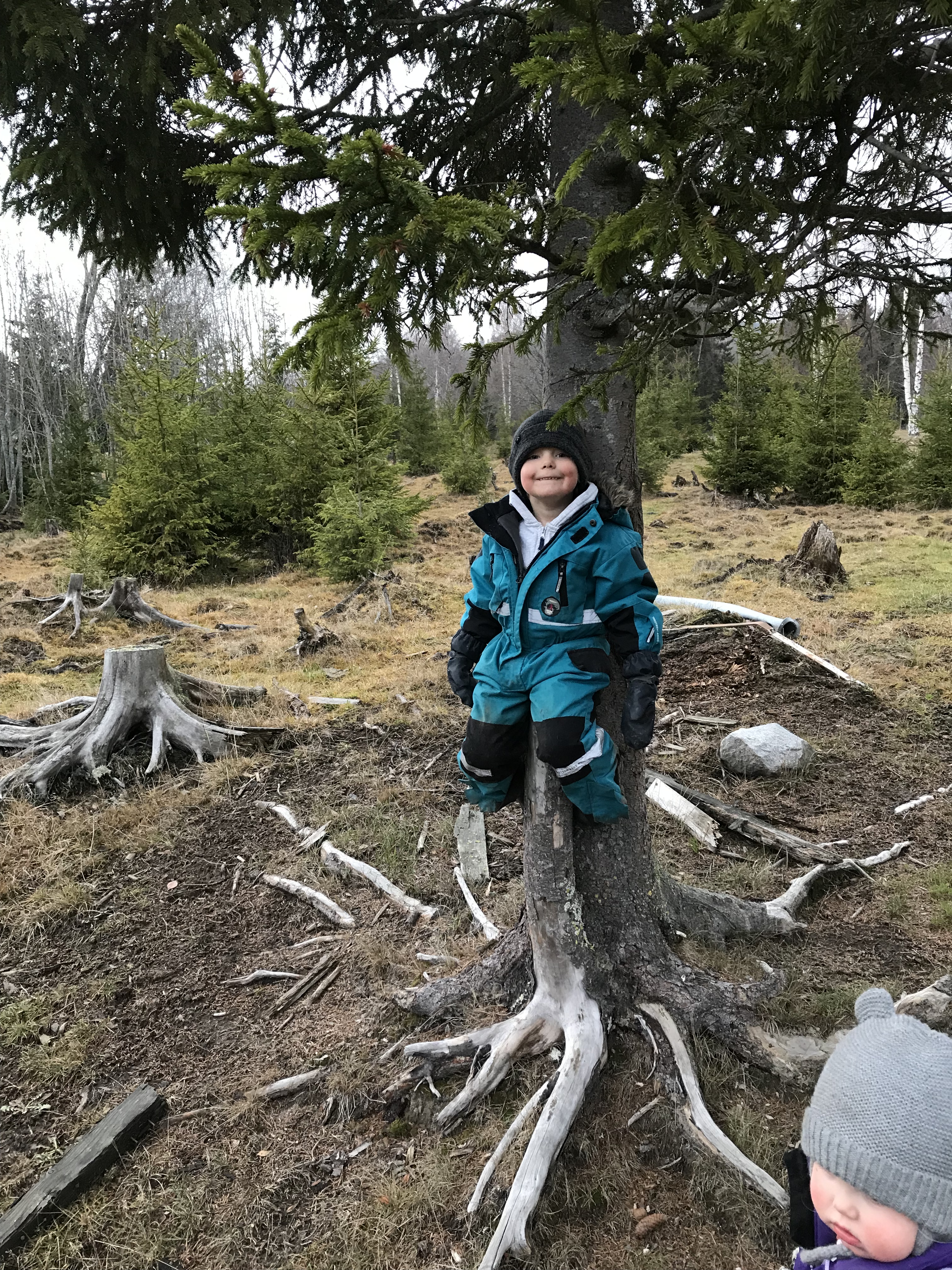 Och här är vi fem år senare. Med en pojke som tar på sig denna overall. Som har en lillasyster som såklart också vill ha overall på sig när storebror tar på sig nått nytt. Hon får en alldeles för stor men hon blir så nöjd så.