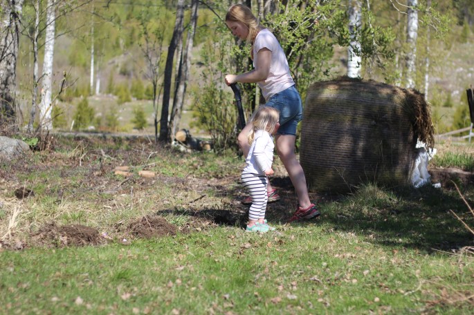 Och idag började dagen såhär. Ljummen och solig. Energin bara kryper in i kroppen och hela förmiddagen spenderades ute i pallkragar och odlingsbädd. Efter fixet igårkväll var det bara att peta ner frön i jorden idag. Allt med två hjälpredor såklart. Vi får se om det kommer upp morötter och spenat på andra ställen än just där det var tänkt också…