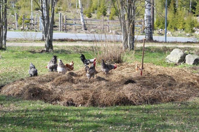 Nu ska jag bara flytta in kycklingarna som fått vara hela dagen i sin utebur sedan tar vi kväll!