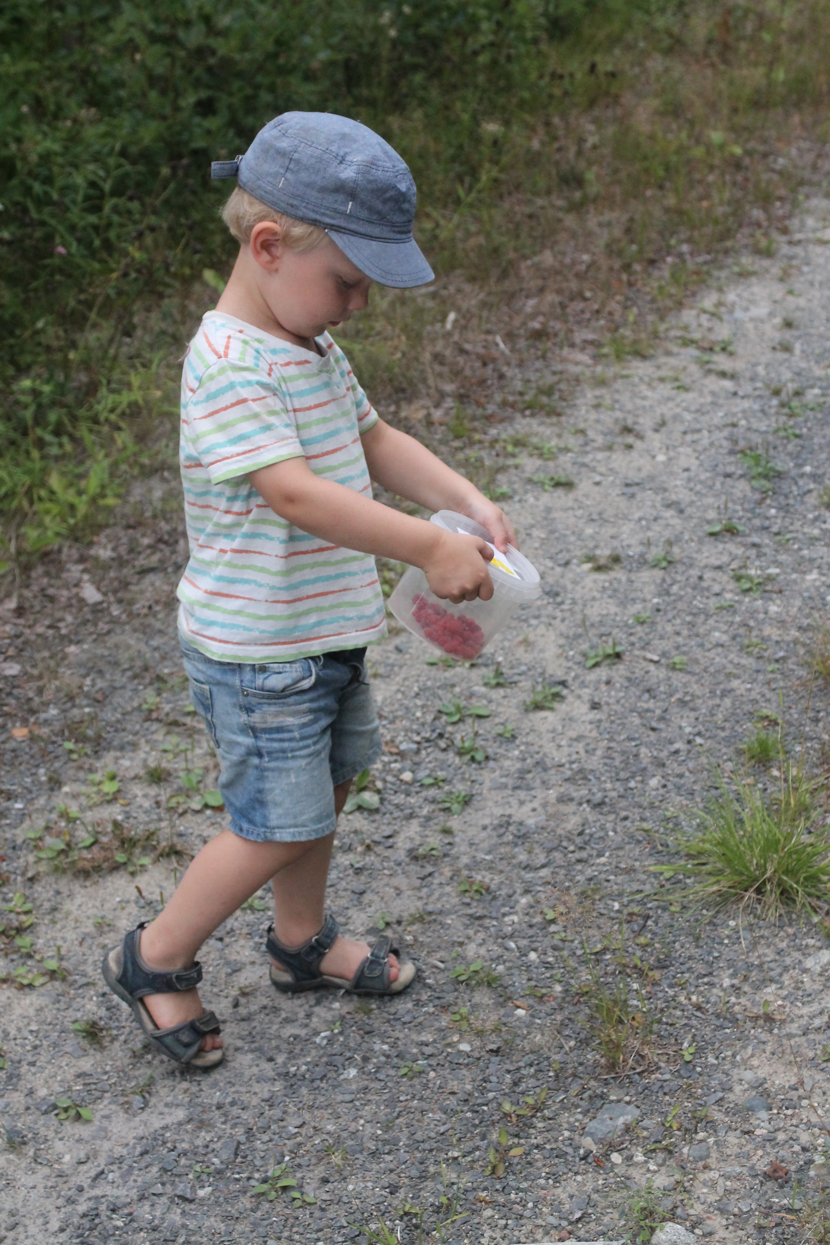 En höjdare för kidsen, att springa så fort småbenen bar över lägdor, fika frukt på ett stenröse där man själv fick välja vilken sten man skulle sitta på osv. Ett stenkast från gården. Det behövs inte mer. Man behöver inte åka långt för att göra en utflykt, det blir äventyr för ett barn hemma i byn också.