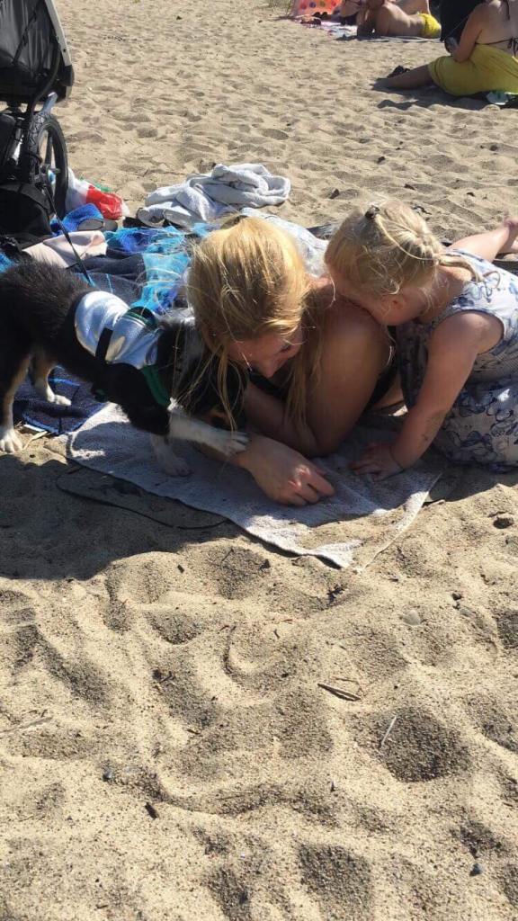 Och hon där i mitten, överlycklig att få träffa lite bästa kompisar efter att inte ha träffat några lekkompisar alls på en månad.