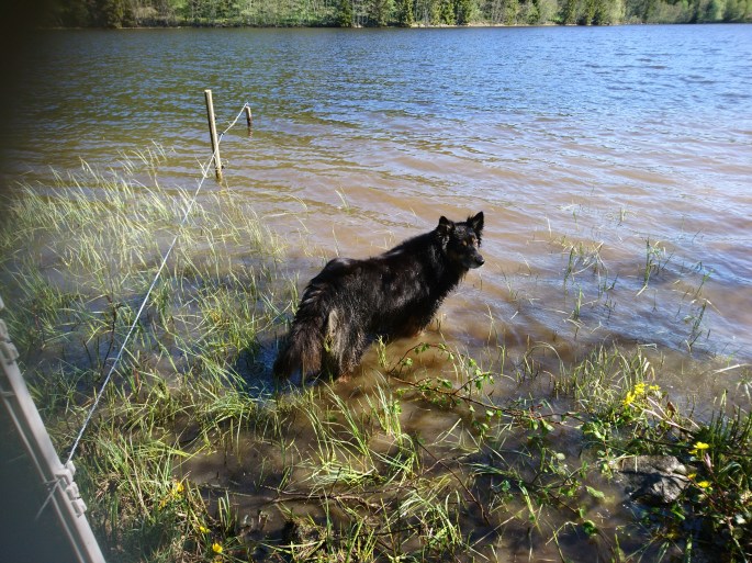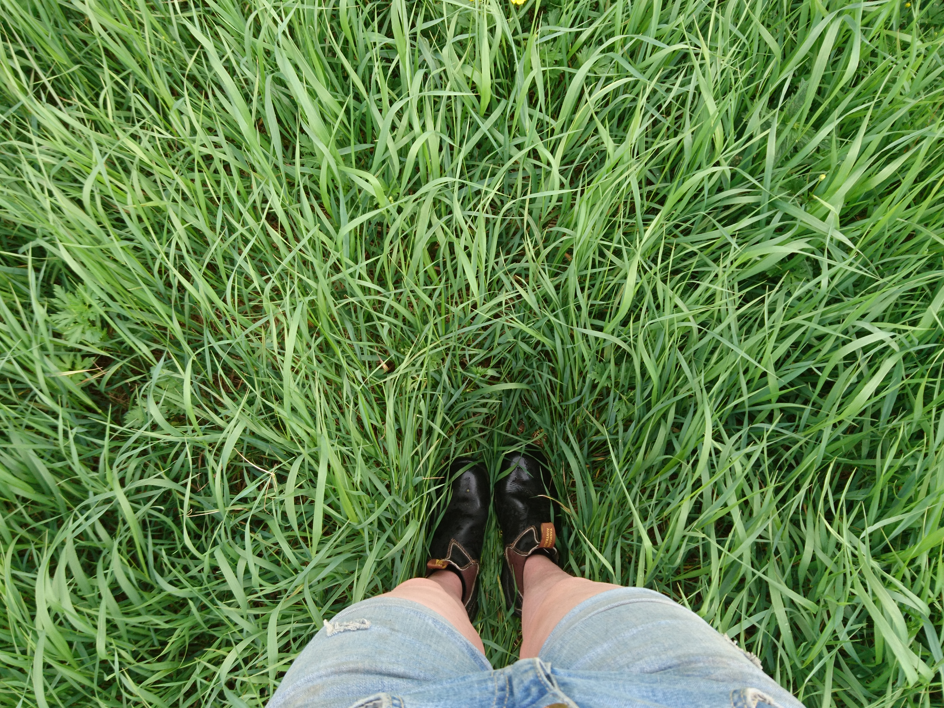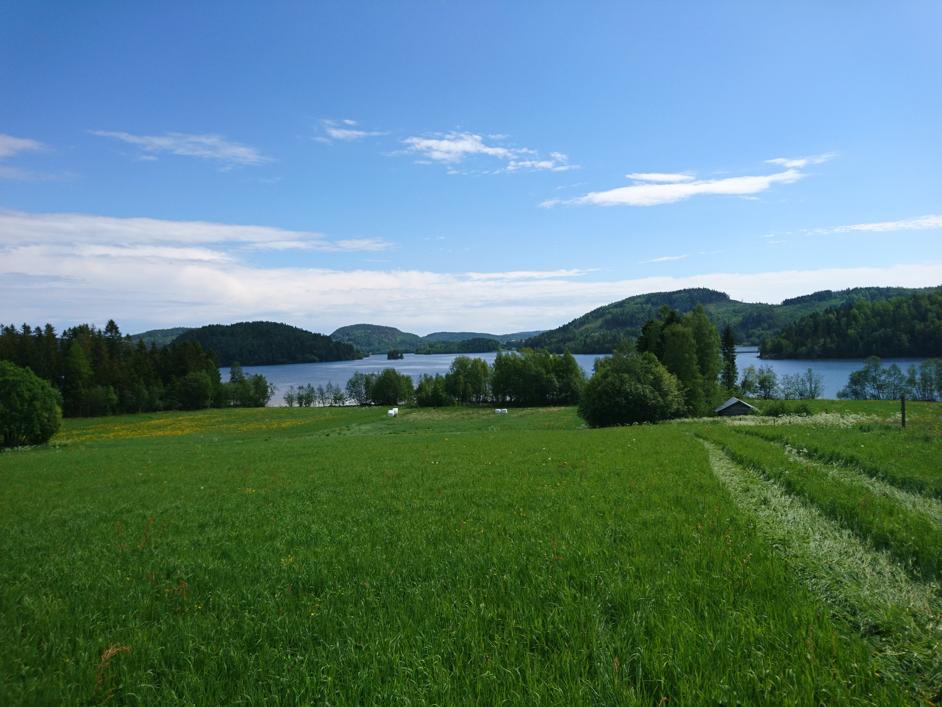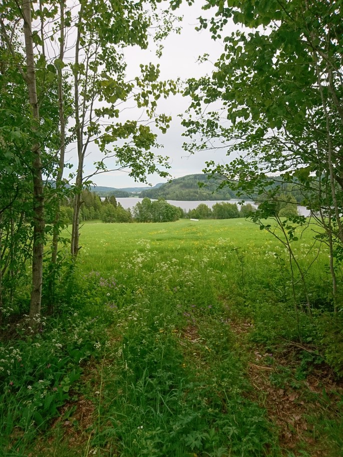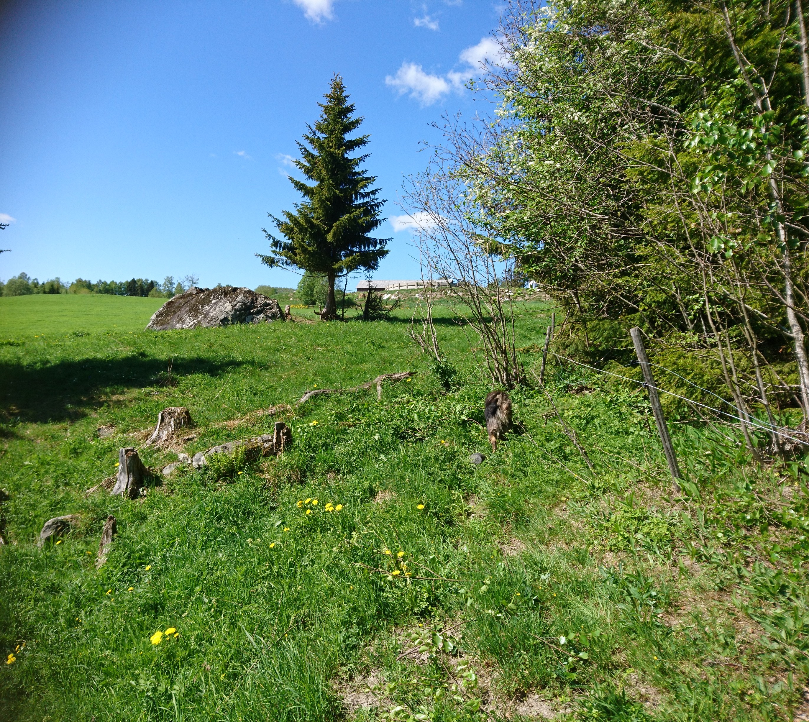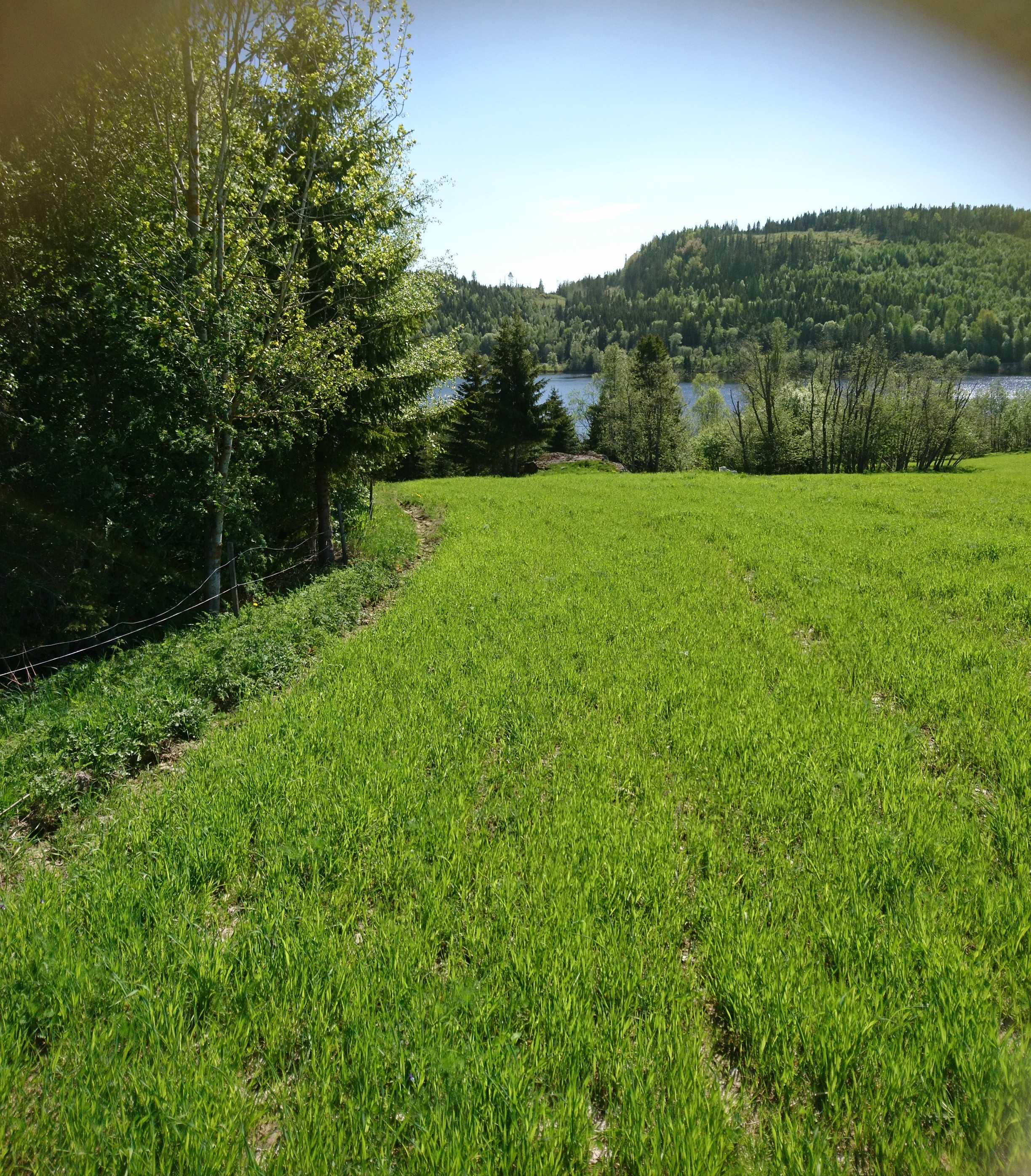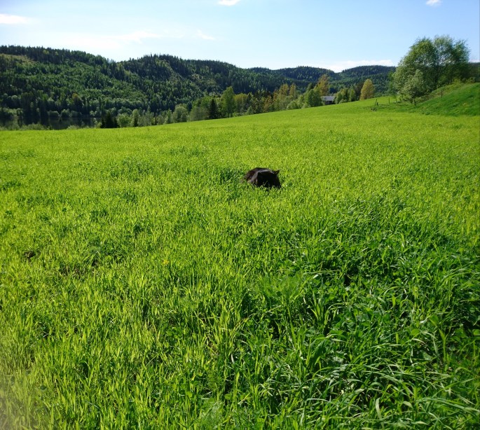 Gräset har växt otroligt bra här! Nästan lite väl långt att släpp djuren på! Vi har gjort denna stora i två fållor och den ena kommer vi att slå först så får de beta återväxten, annars kommer ju den sidan att dra iväg ännu mer!