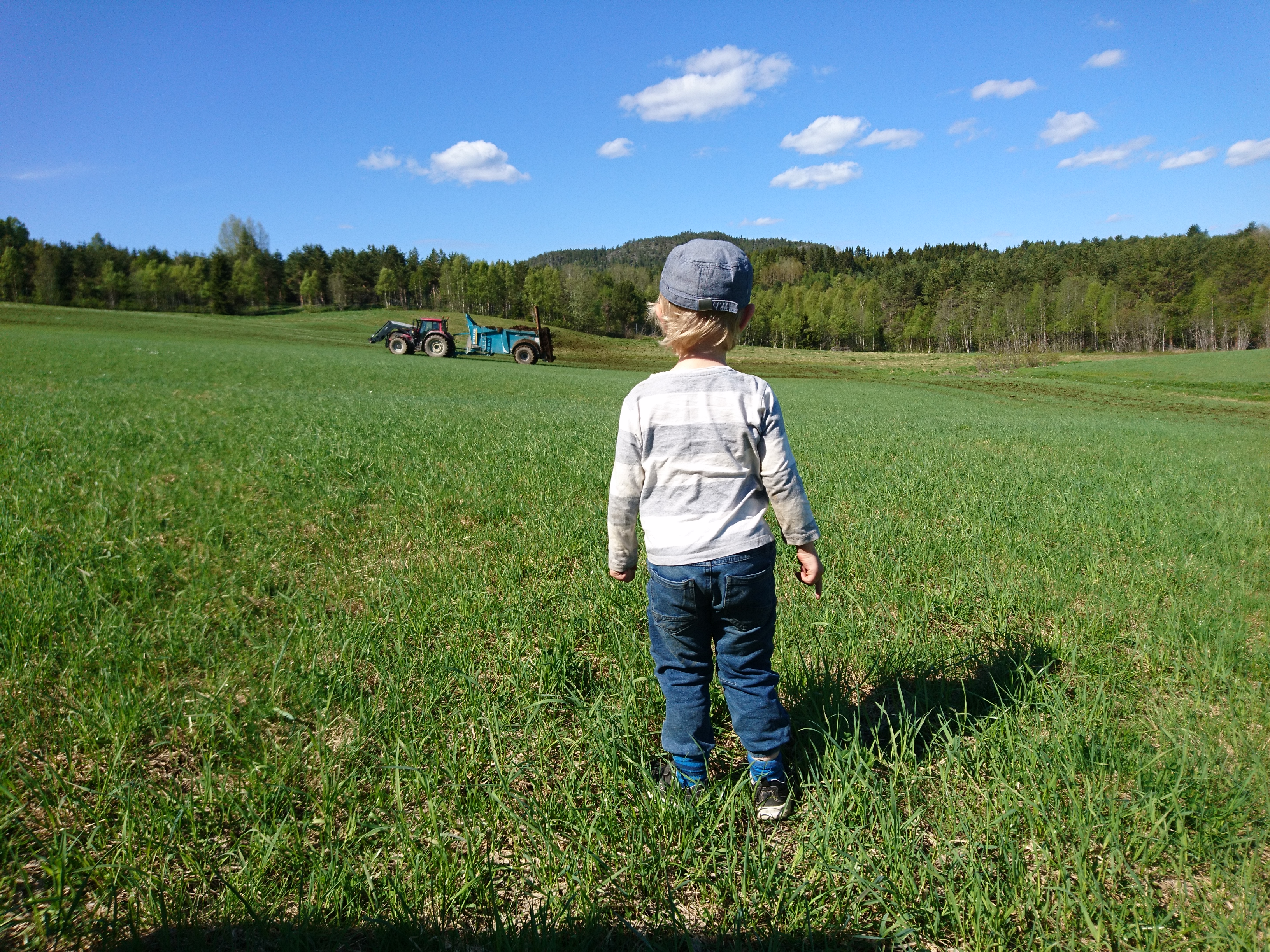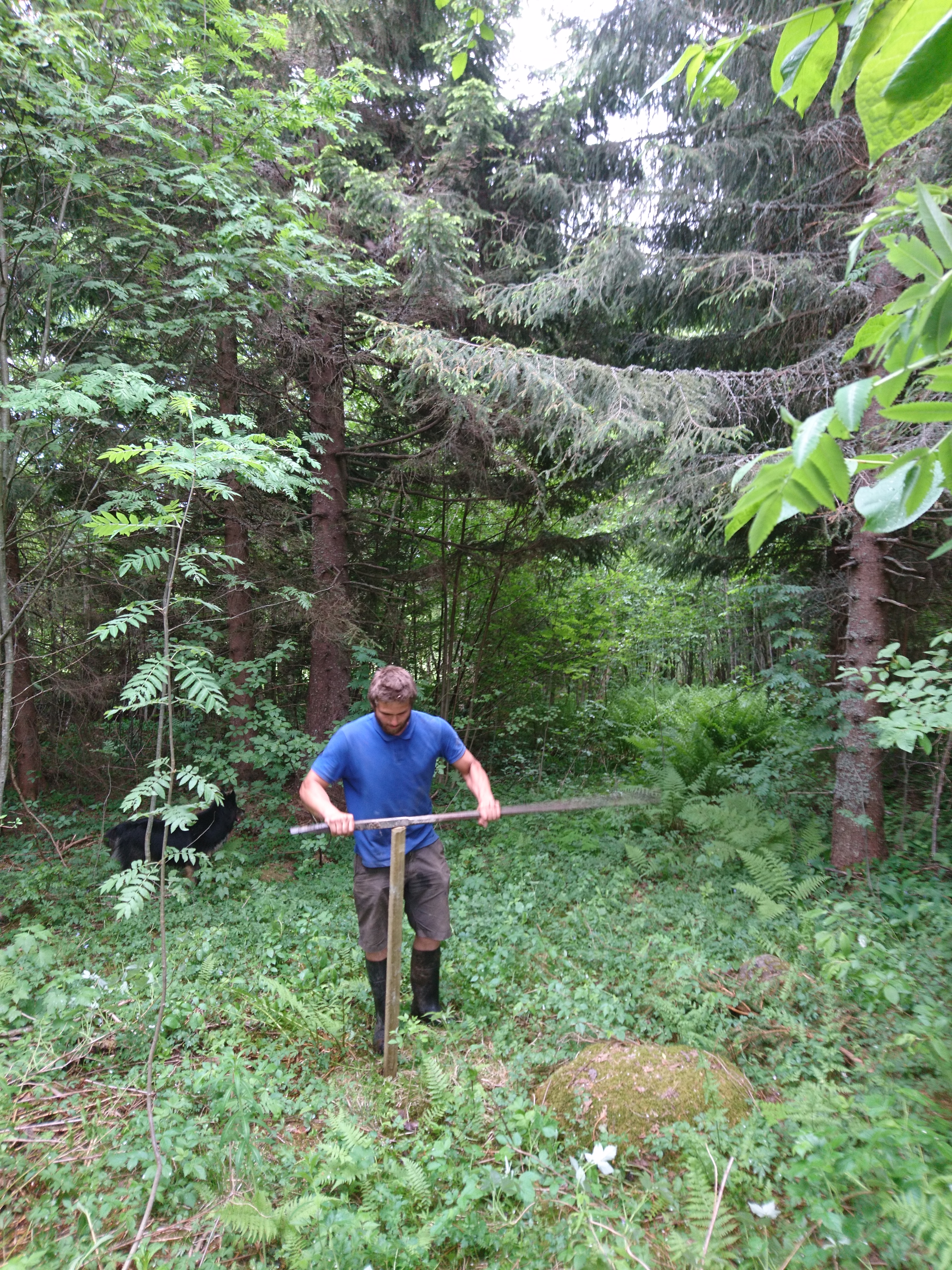 Som han jobbar på vår lille treåring. Ska alltid hjälpa till, inget gnäll och är en riktig hårding! Tror mamman lät mer än pojken när vi gick igenom den täta skogen med kvistar som rev och brännässlor som brändes.