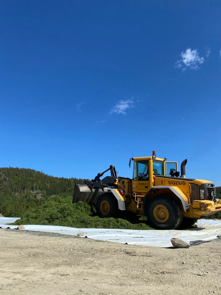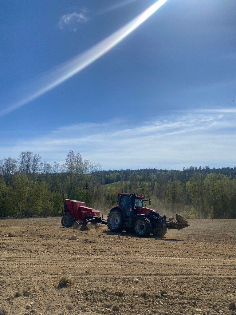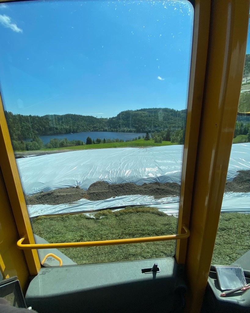 Jag satt och packade på limpan med en inhyrd L120. Jätteviktigt att packa ihop gräset så mycket som möjligt så att inte syre kan härja runt och förstöra. Lite nervös inför det uppdraget men jag hoppas att det gick bra.