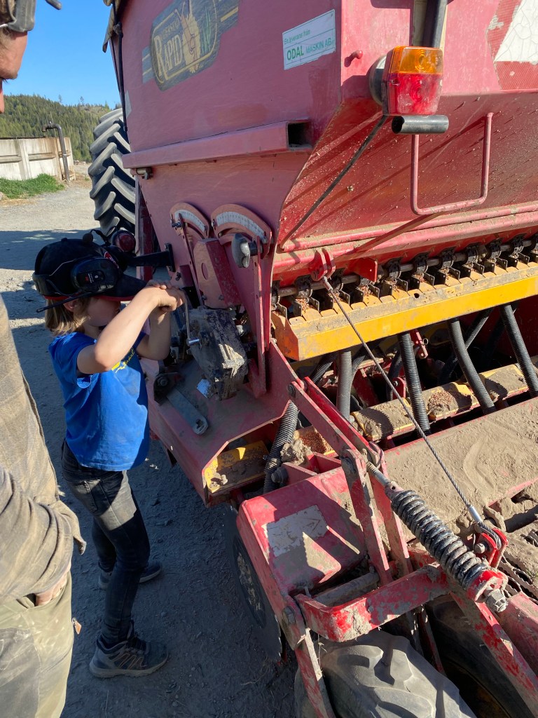 Slåttermaskinen slog inte riktigt som den borde… Lämnade tussar och igångkörningen fick inte riktigt till det. Vi slog ut en del ändå och började köra in. Men massa stilledtånd när person efter person kom och skulle föröska hitta och rätta till felet, utan bra resultat. Till och med ett proffs från Finland tog färjan över men inte heller han kunde förstå hela problemet.