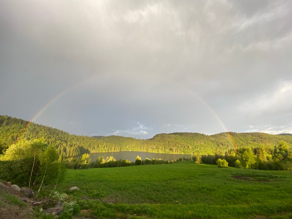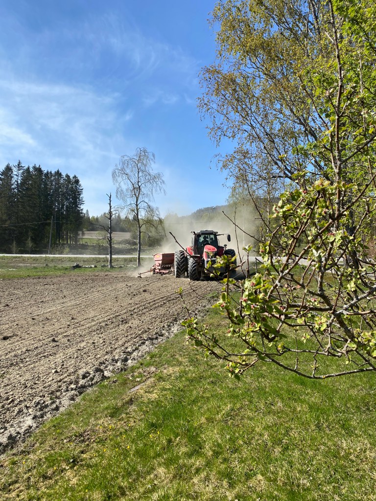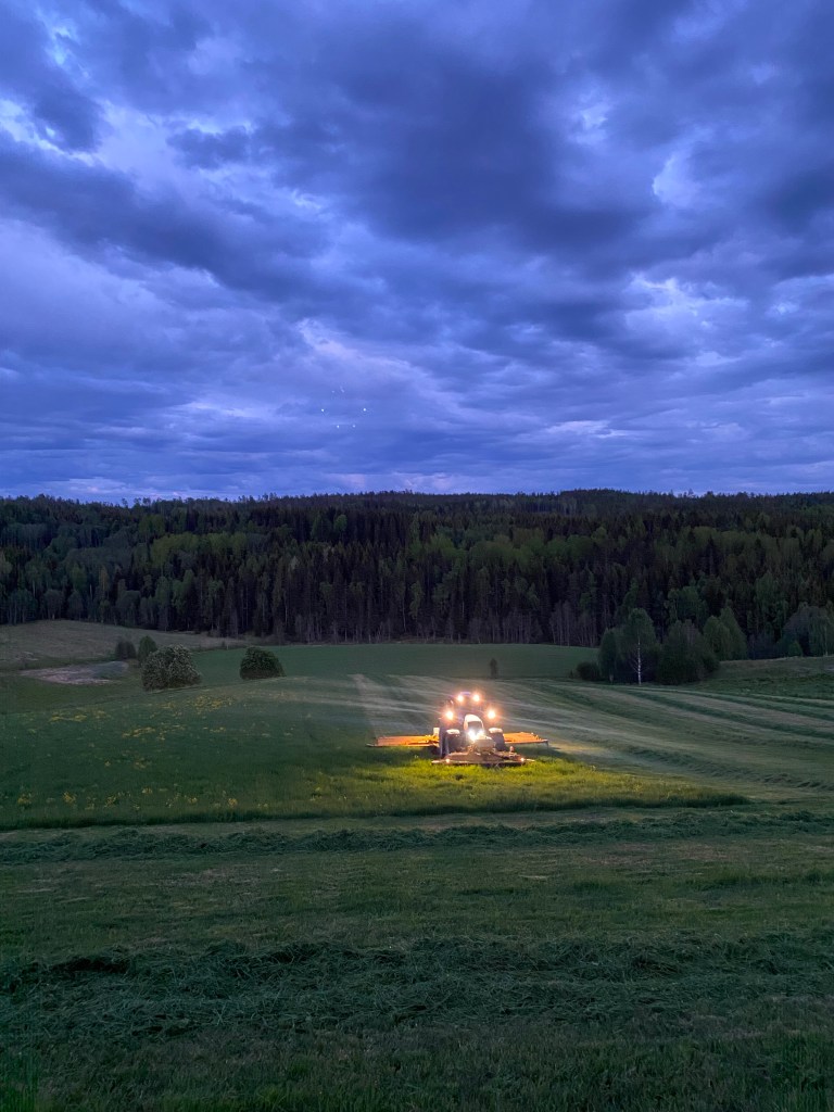 C fick slåtteruppdrag i grannbyn i samma veva. Som inte alls egentligen skulle bli stressigt då vi tyckte att vi hade gott om tid med vår skörd innan den slåtterdagen kom men då det blev så utdraget så blev det samma dag som vi körde in det sista gräset. Otroligt tacksam för att andra bönder ställer upp och hjälper till när det kör ihop sig!