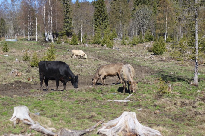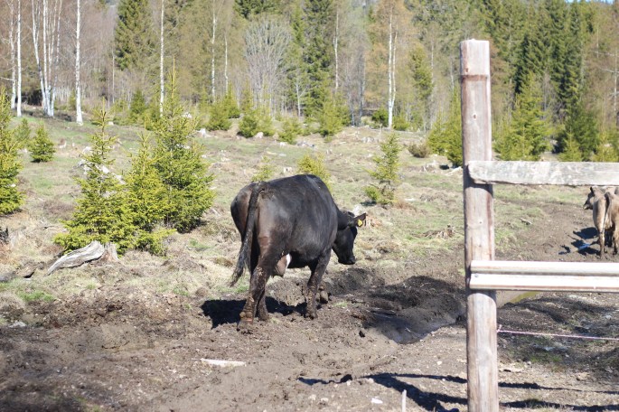 Många steg i benen senare var det dags att släppa ut de råmande korna från lagårn. De vet precis vad som väntar när vi håller på att greja utanför. Grönt gräs hägrar!