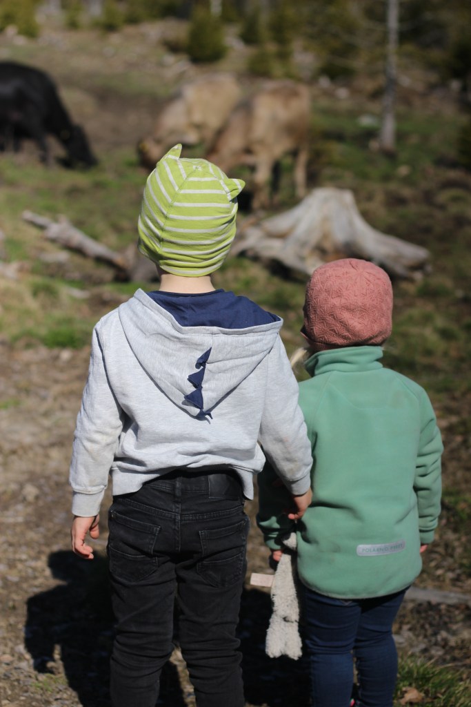 Pontus hade sett den nya grimman som kommit med en beställning och ville så gärna gå med en kalv! Nu är ju de minsta ett par veckor och blir väldigt stora och starka fort så det var inte så mycket ”gå i koppel” men ungen sken av lycka att få hålla och försöka vinna dragkampen. Får flashback från när jag själv var liten och gick med kalvar titt som tätt ute på gården!