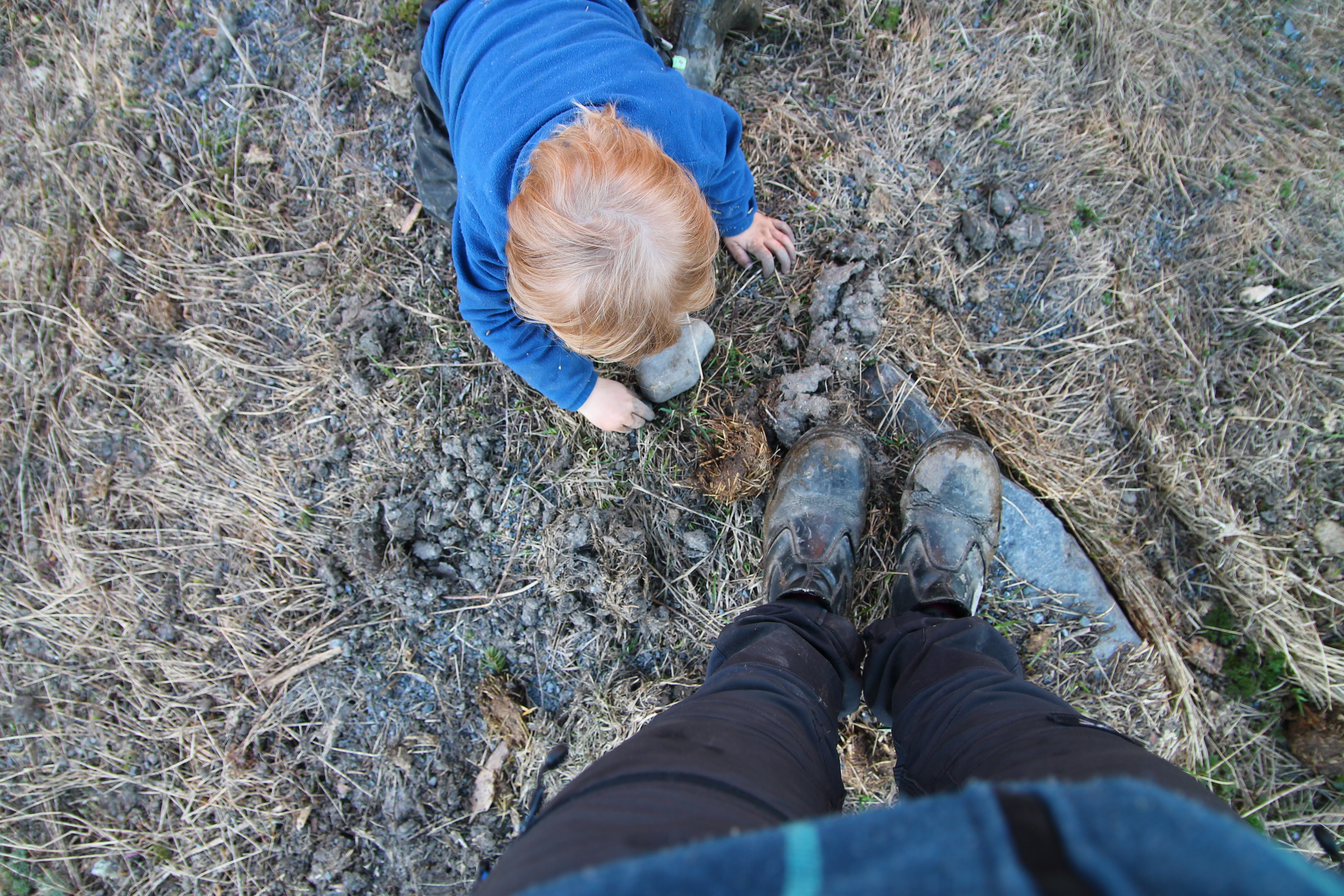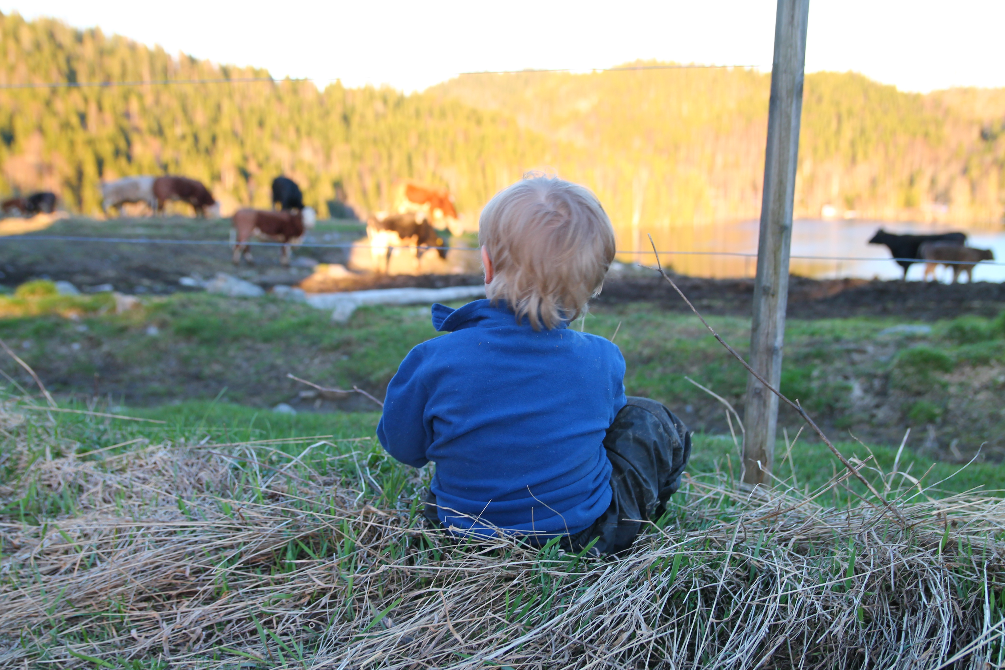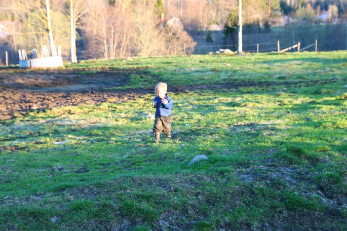 En kort visit hos Gammelmormor och sedan hem. En snabb genomgång av kvällens plan och så ut med oss alla. Pappan skrapade och halmade lagårn och jag och barn fixade stängslet det lilla som var kvar på rastfållan. Inget riktigt grönbete men en utomhushage med lite grönska på sina ställen.