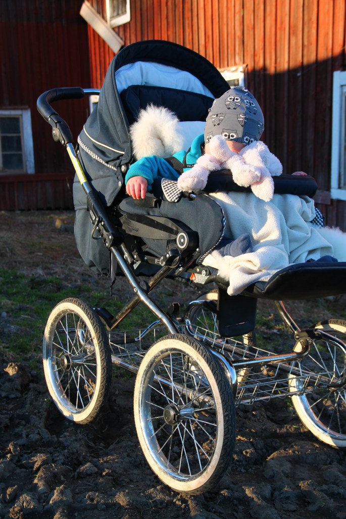 Lillsnoffsan fick sitta i vagnläge efter en dag på föris och som inte fått sina sömntimmar riktigt men det var hon nöjd med. Tröttnos.