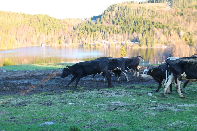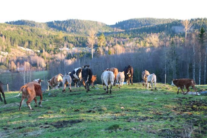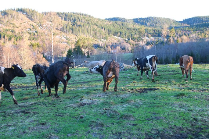 Och så var det dags. Grindarna öppnades och ett av gängen med kalv fick komma ut och skutta med barmark under klövarna!